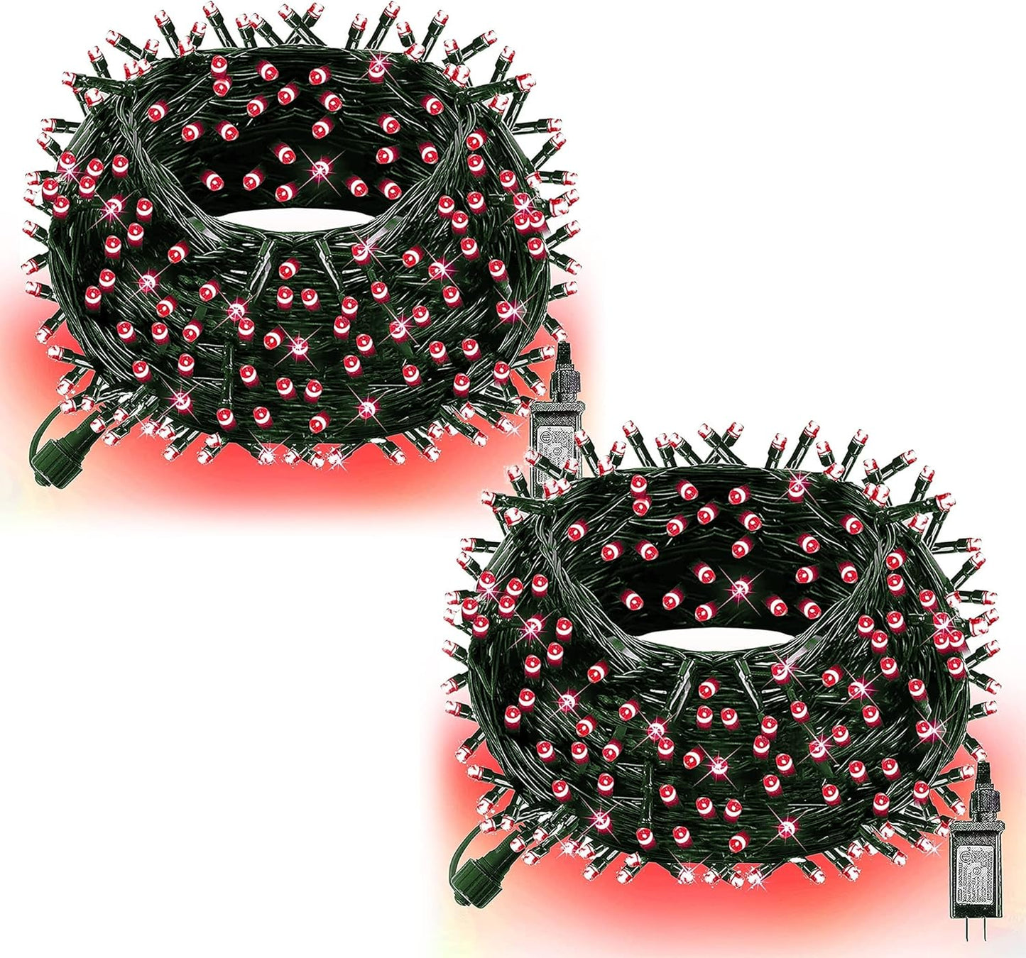 Dazzle Bright Christmas String Lights, 132FT 400 LED Connectable Green Wire 8 Modes String Lights, Waterproof Christmas Lights for Indoor Outdoor Patio Party Wedding Decorations, Red