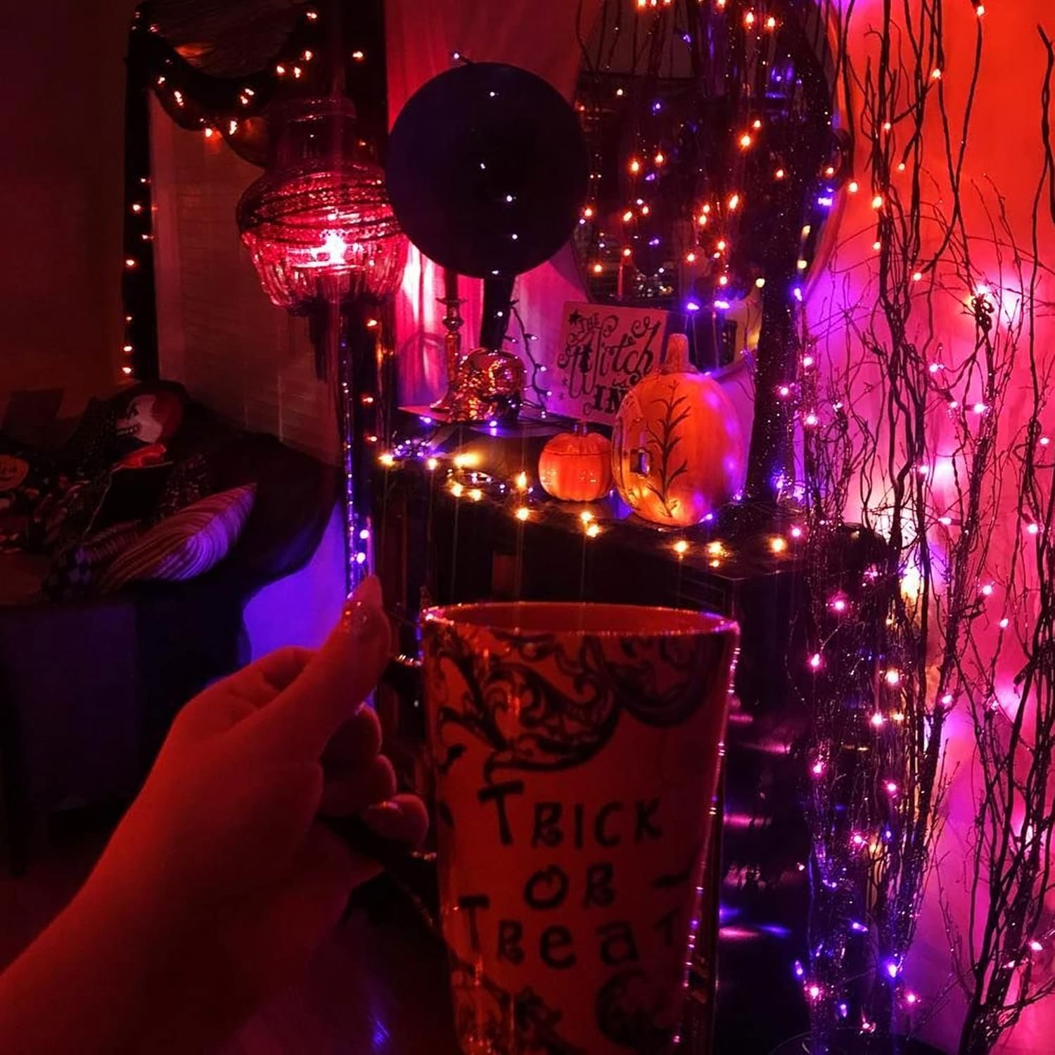 Purple and Orange Solar Halloween Lights Outdoor, Total 80 FT 240 LED Solar Powered Waterproof Fairy Lights 8 Modes Copper Black Wire Lights for Halloween Party Tree Wedding Yard Decorations, 2 Pack
