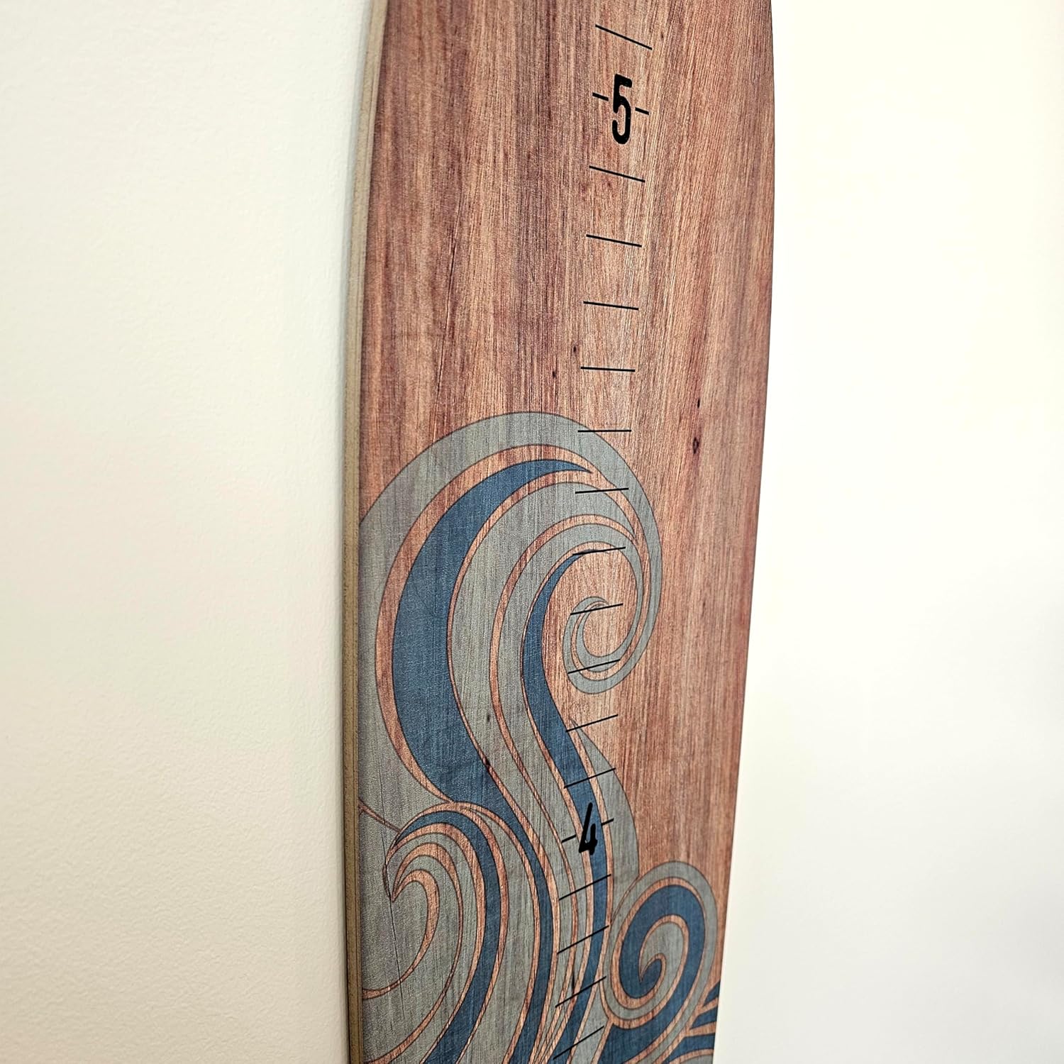 - Blue Wave, 9.5" x 45" Surfboard-inspired Growth Chart: A functional and stylish piece that blends seamlessly into nurseries, playrooms, and beach-themed spaces while serving as both decor and a way to track growth milestones.