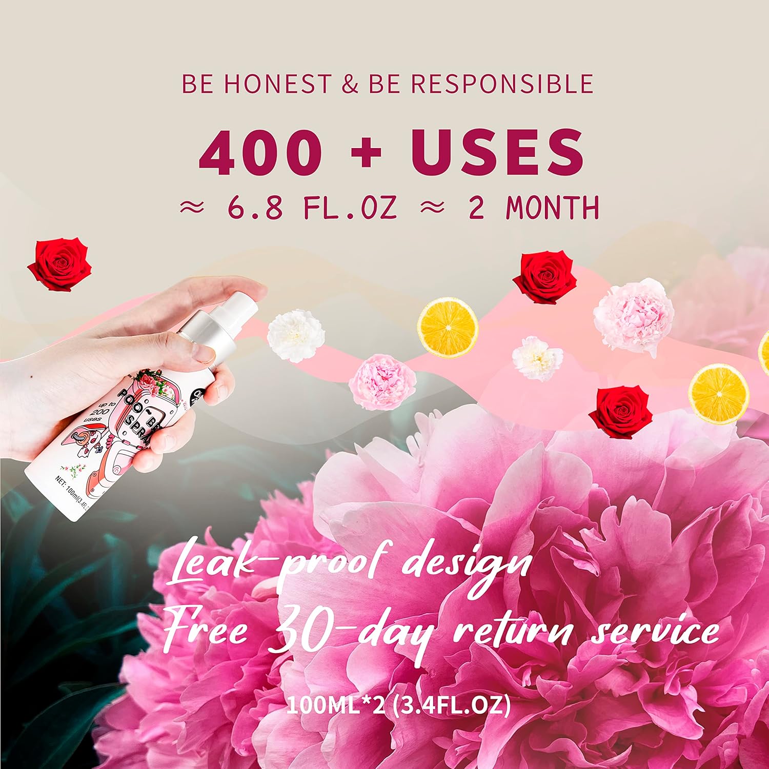 Clean-n-Fresh Toilet Spray, Wild Peony Scent, Bathroom Odor Eliminator & Air Freshener For Room, Trash Cans, Shoes, Fabrics, 3.4 Fl Oz(2 Pack)