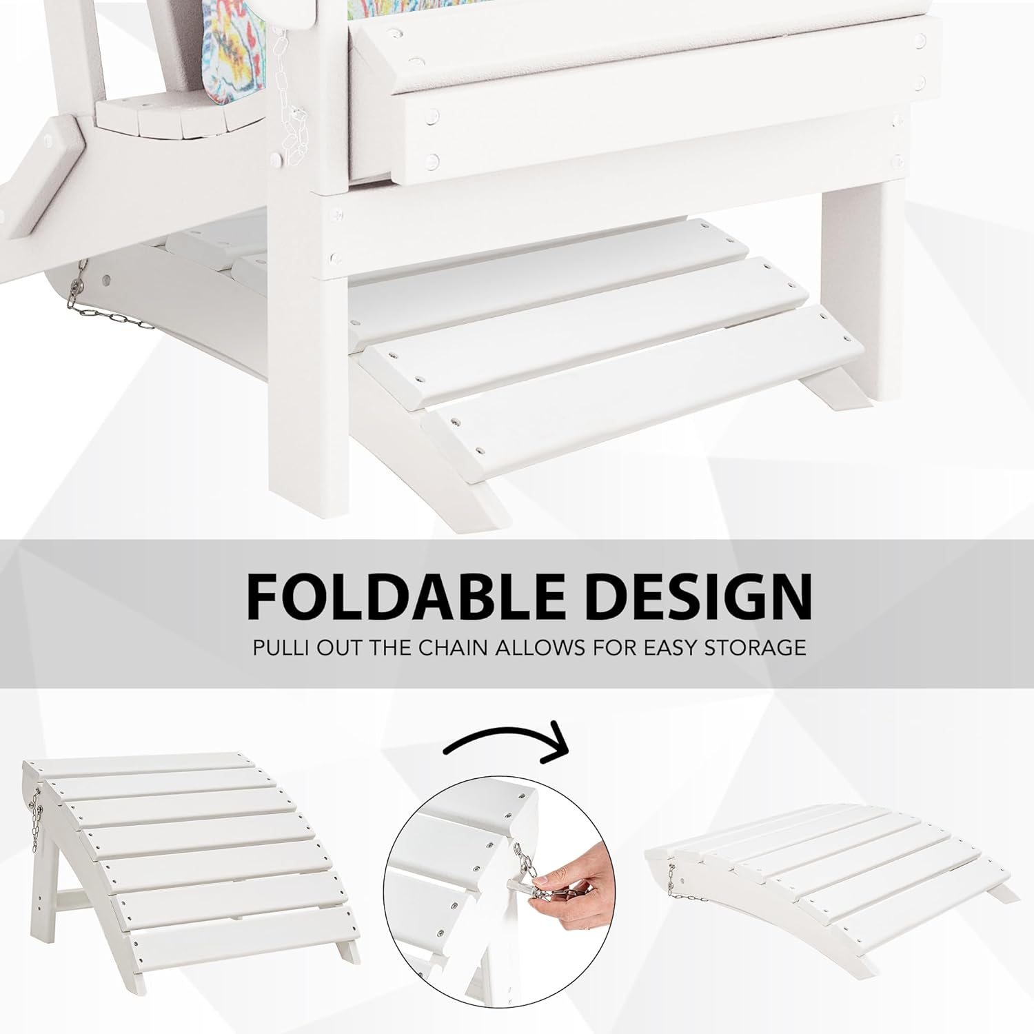 Sundale Outdoor Folding Plastic Adirondack Ottoman, All-Weather Adirondack Chair Footrest, Fade and Rust Resistant, Perfect for Outside Patio Garden Pool Yard White
