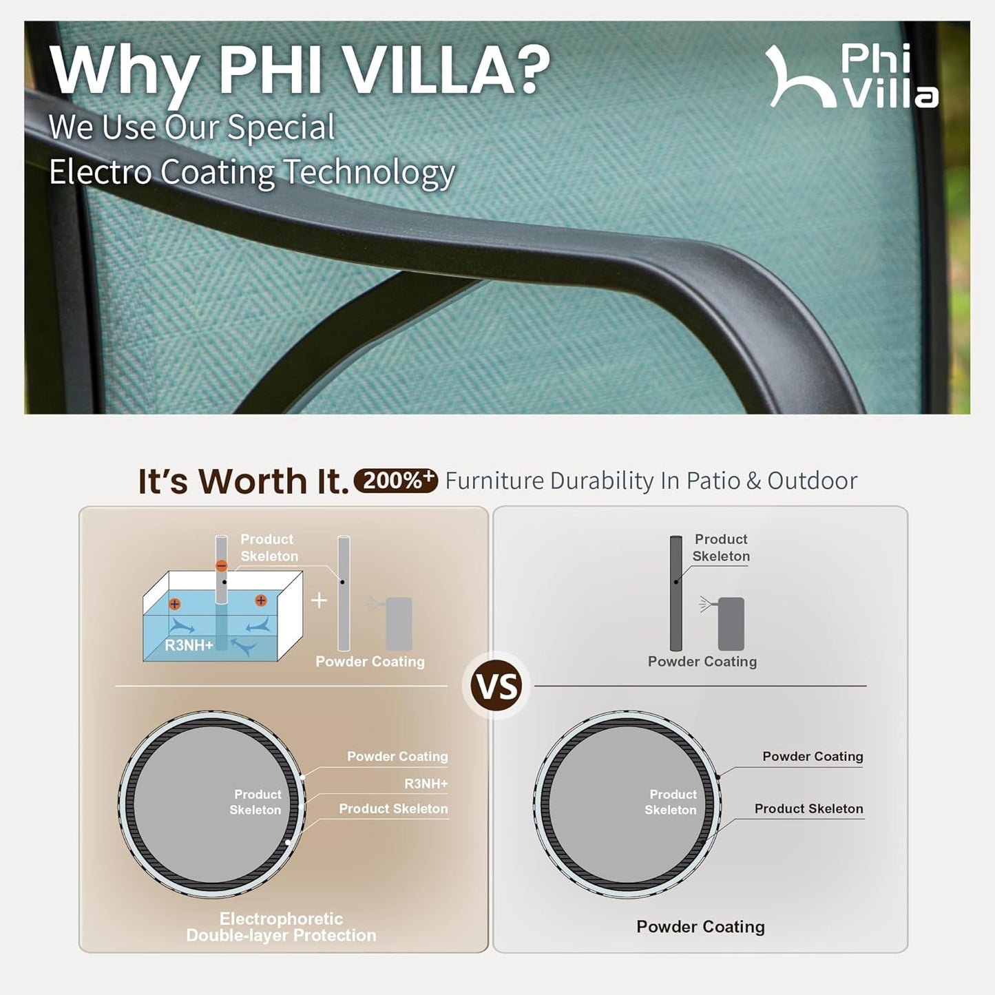 PHI VILLA 5 Piece Outdoor Bar Set, High Top Patio Bistro Bar Table and 4 Outdoor Swivel Bar Stools Chairs with Teal Textilene Fabric for Outside, Balcony, Garden and Yard