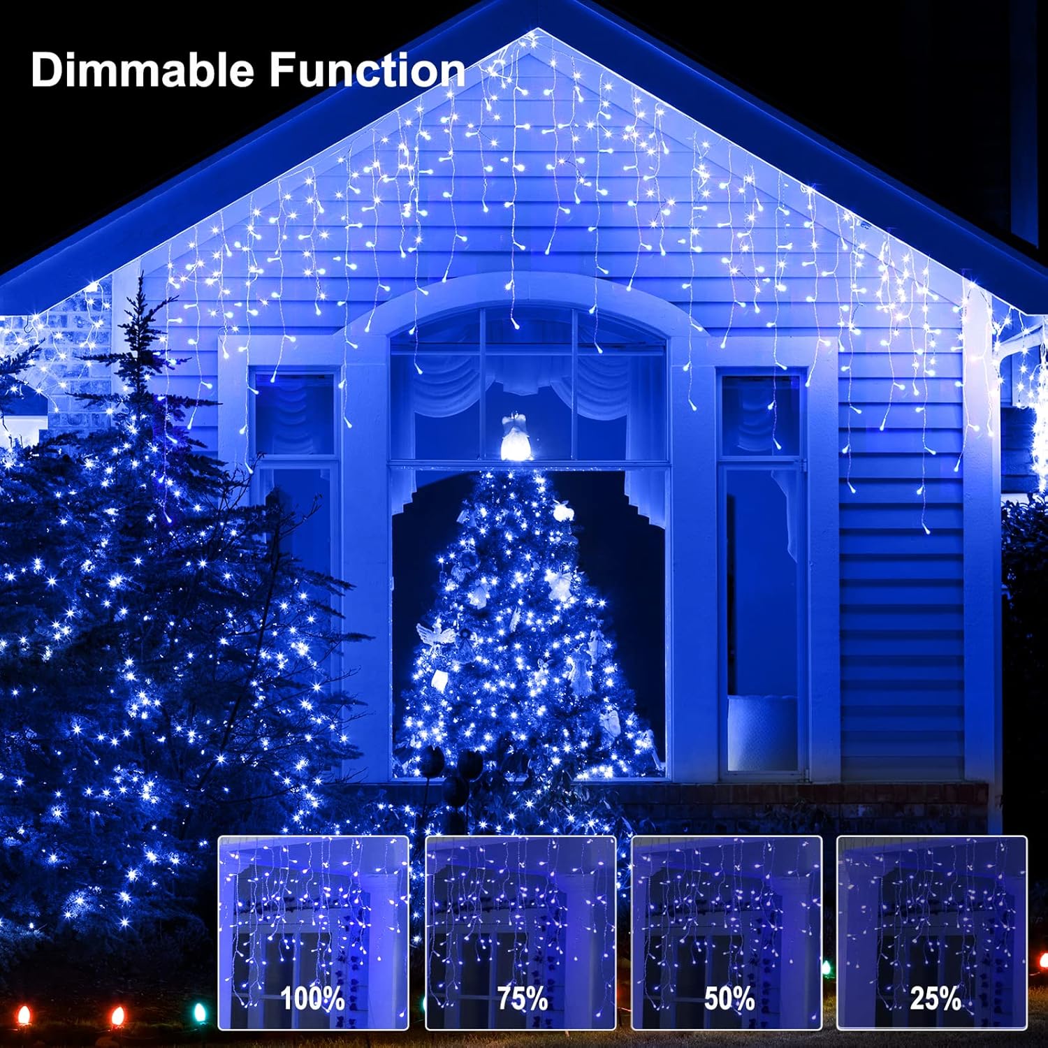 Brightown Blue Icicle Lights, 66Ft 736 LED Outdoor with 138 Drops, 8 Modes Remote and Timer for Halloween, Hanukkah