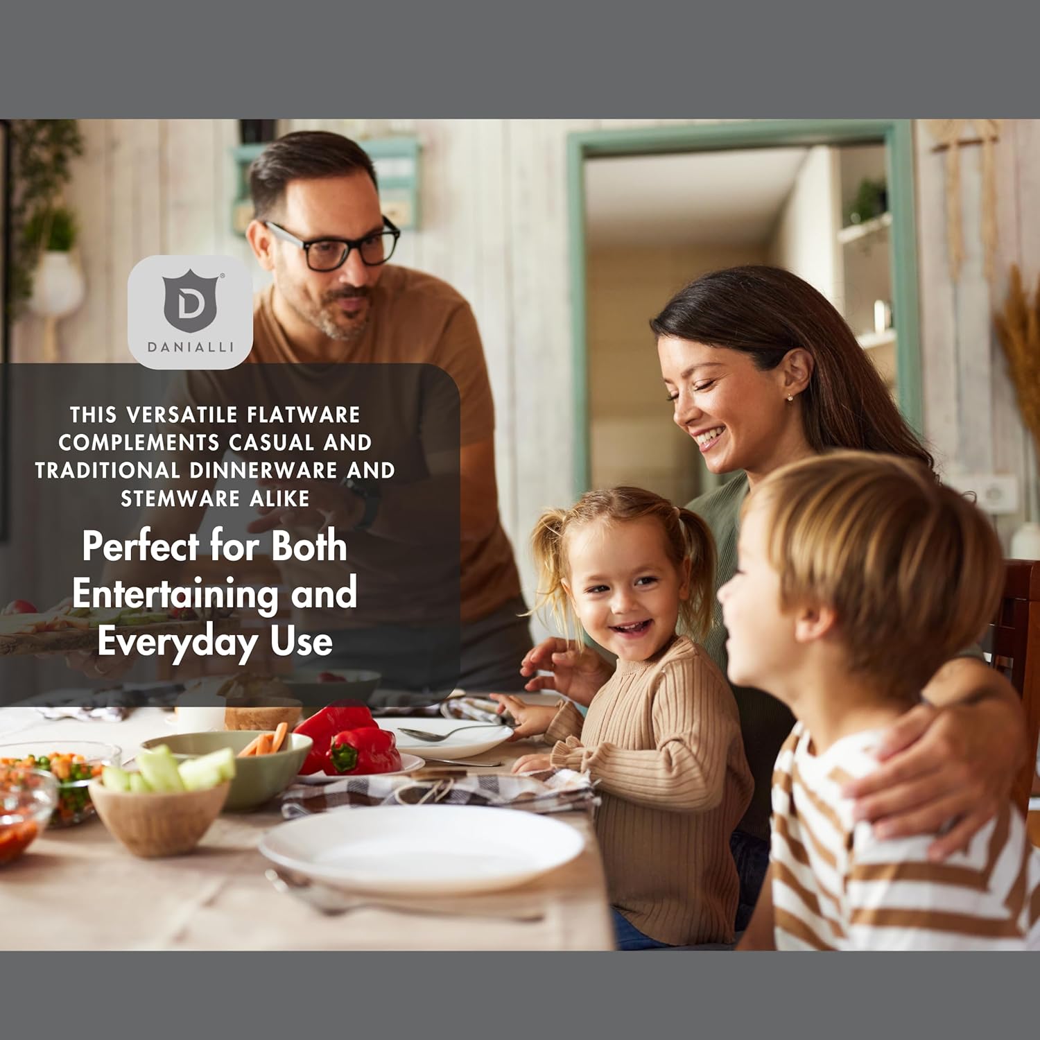 - Complete Service for 8 – Includes 8 dinner knives, 8 dinner forks, 8 salad forks, 8 tablespoons, and 8 teaspoons.