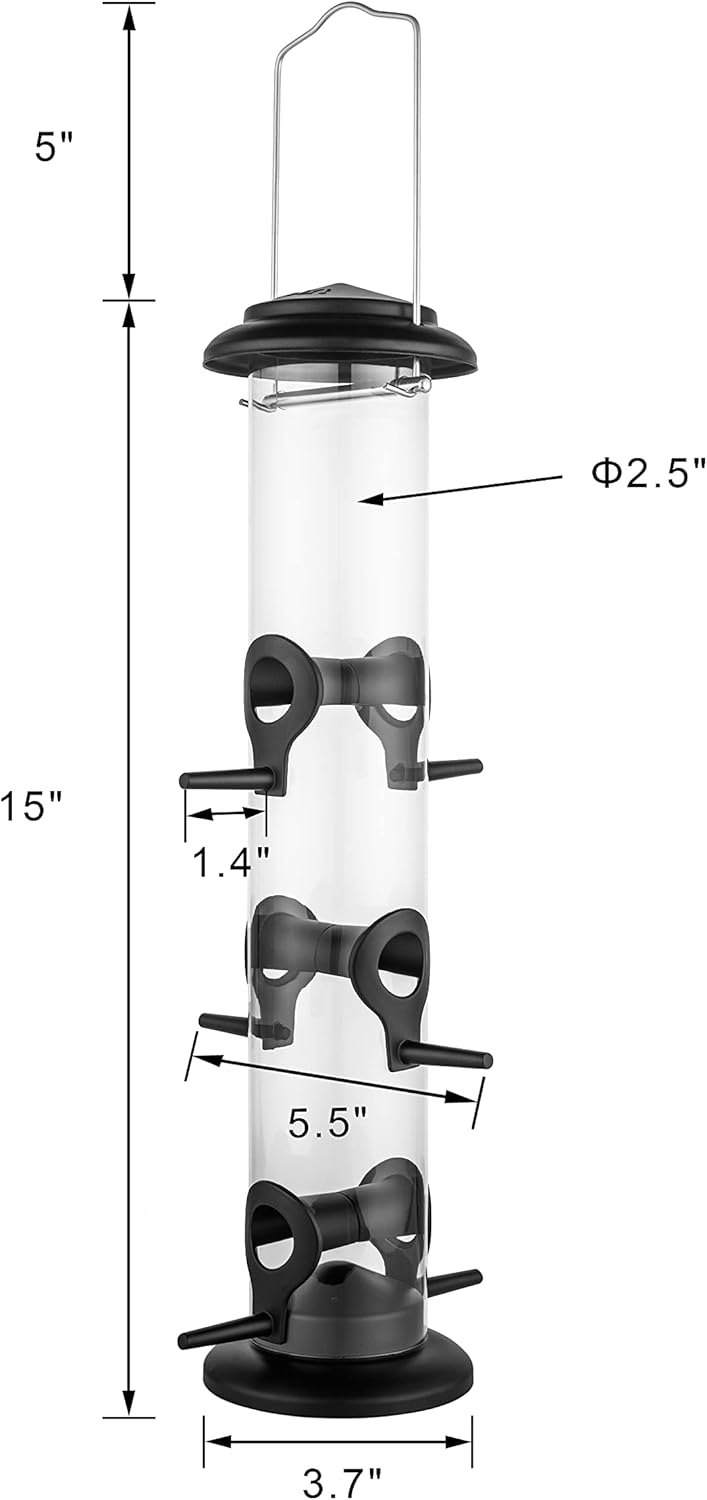 iBorn Metal Bird Feeders Black Wild Bird Feeder for Outdoors Hanging All Metal Black Finishing 14 Inch 6 Port(Seed is not Included)