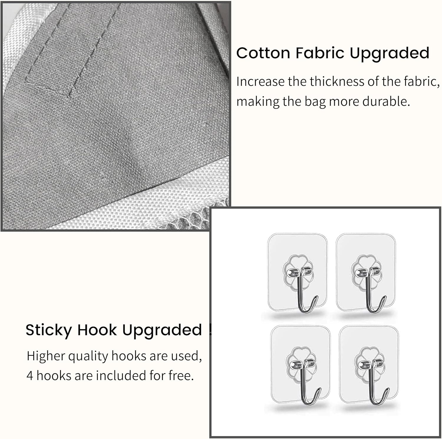 - 【Upgraded Material】We had upgraded the Cotton Linen Fabric and sticky hook quality, making the wall storage bag more durable to hang. Its inner with waterproof type coating, hanging pockets can be used to store items in the bathroom.