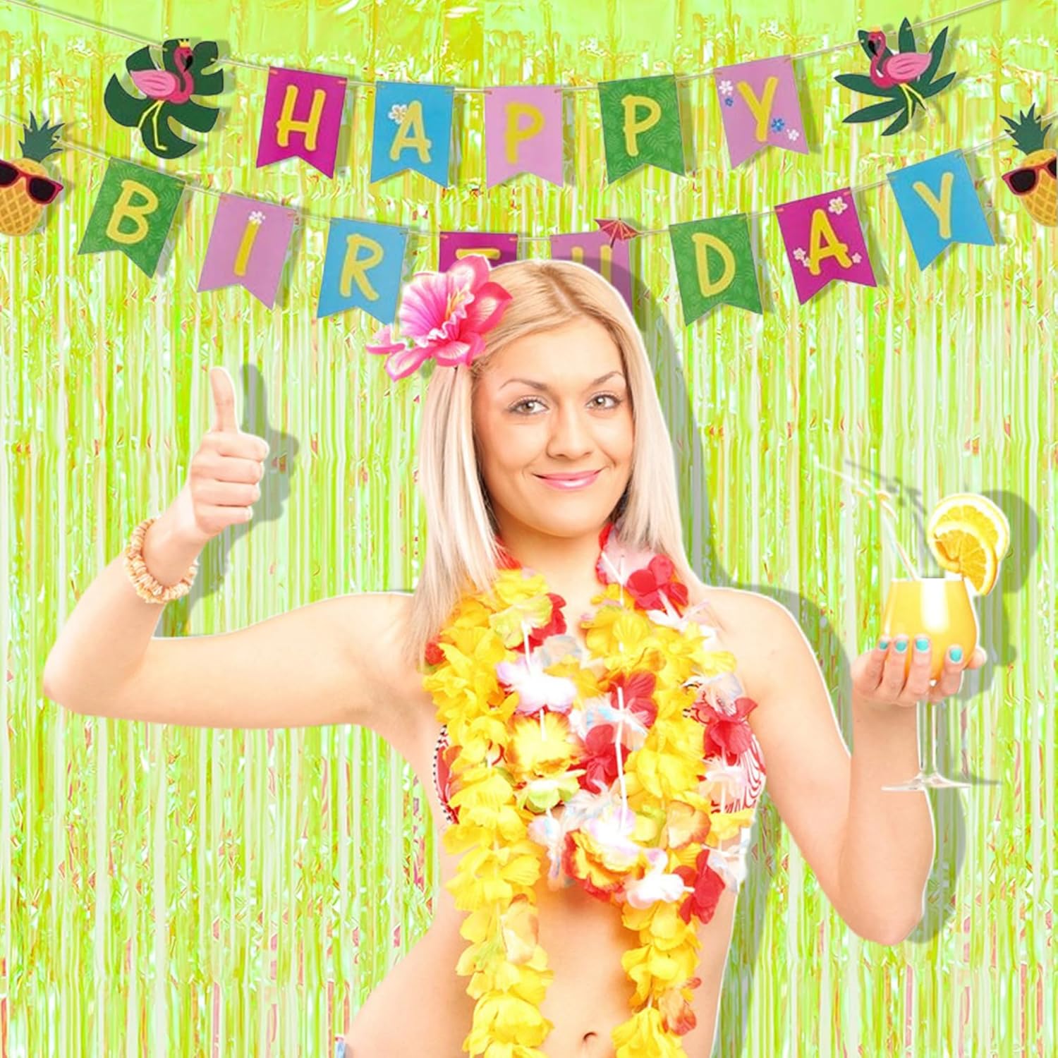 BRAVESHINE Iridescent Foil Fringe Backdrop - 2 Pack 3.2 x 6.5 ft Holographic Tinsel Curtain Party Streamers Photo Backdrop for Birthdays Dinosaur Theme Christmas Patricks Decorations - Clear Green