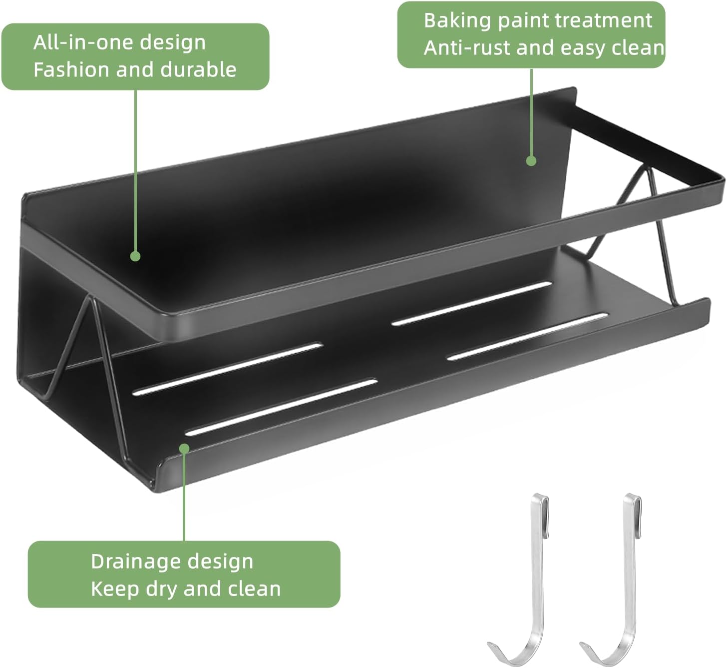 - 【Package Details】Size: 1pcs of rack in 12.2inch * 4.2 inch * 3.5inch, and 1pcs of rack in 12.6inch * 4.3 inch * 3.5inch,, paste film * 2pcs, stainless steel hooks * 2pcs.