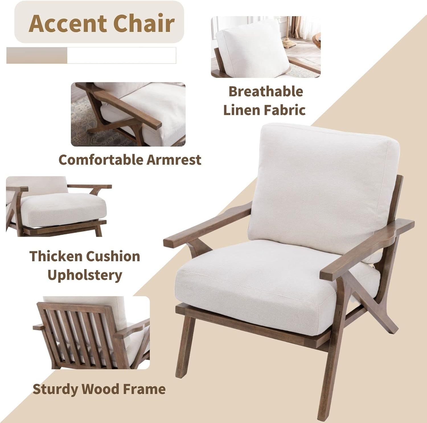 - Color : White Linen Cushions Seat