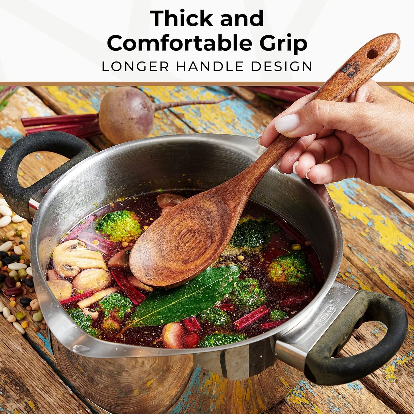 Wooden Spoons for Cooking, 10 Pcs Wooden Cooking Utensils Set – Wooden Utensil Set for Nonstick Pans & Cookware – Teak Wood - Sturdy, Lightweight & Heat Resistant