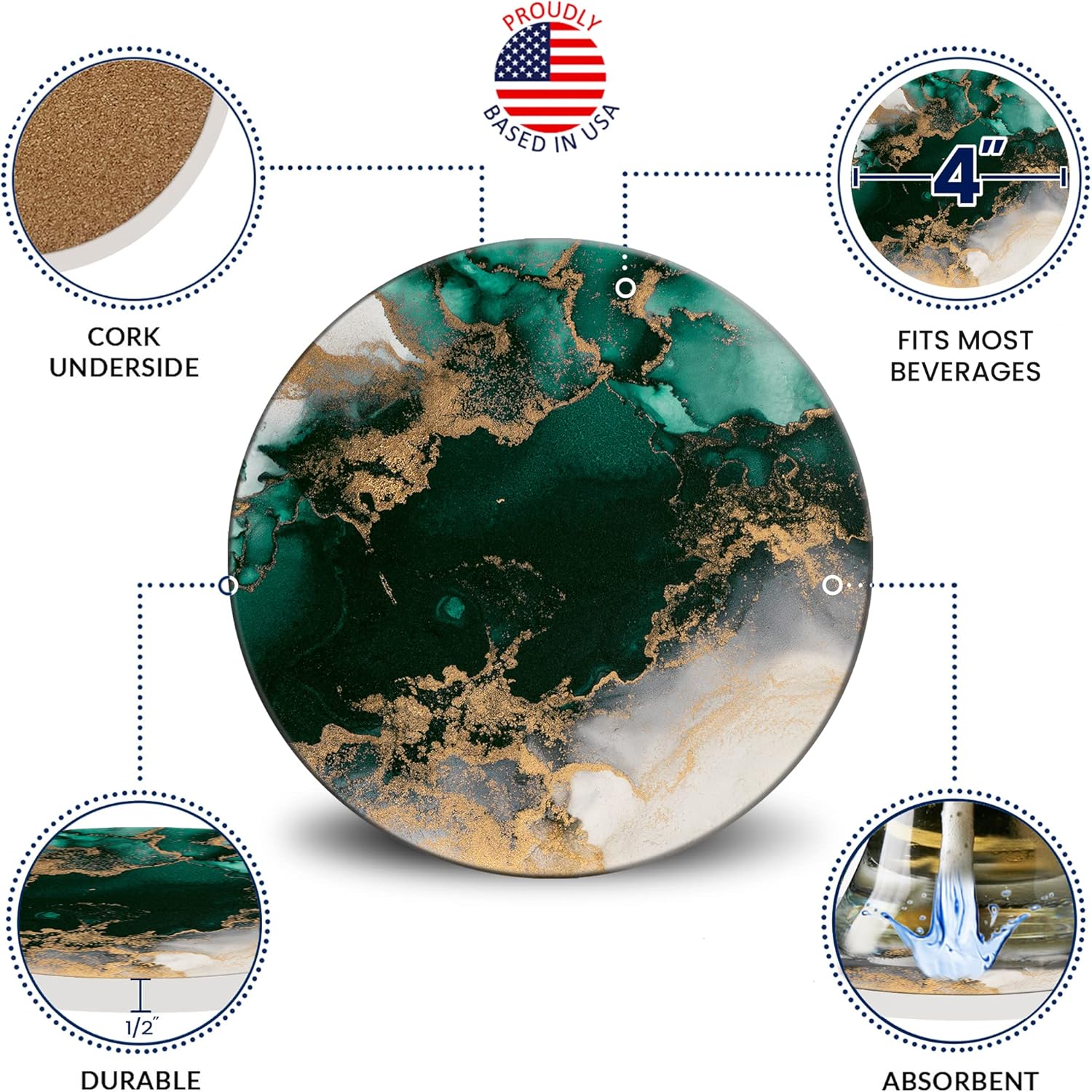 - FULL COMPREHENSIVE PROTECTION – The stone coasters feature non-slip durable cork backing to protect countertops and desks from scratches even from thirsty drinkers! The non-sticky corked backing base helps the coasters stay in place and prevents scratching your glass or wooden countertop tables.
