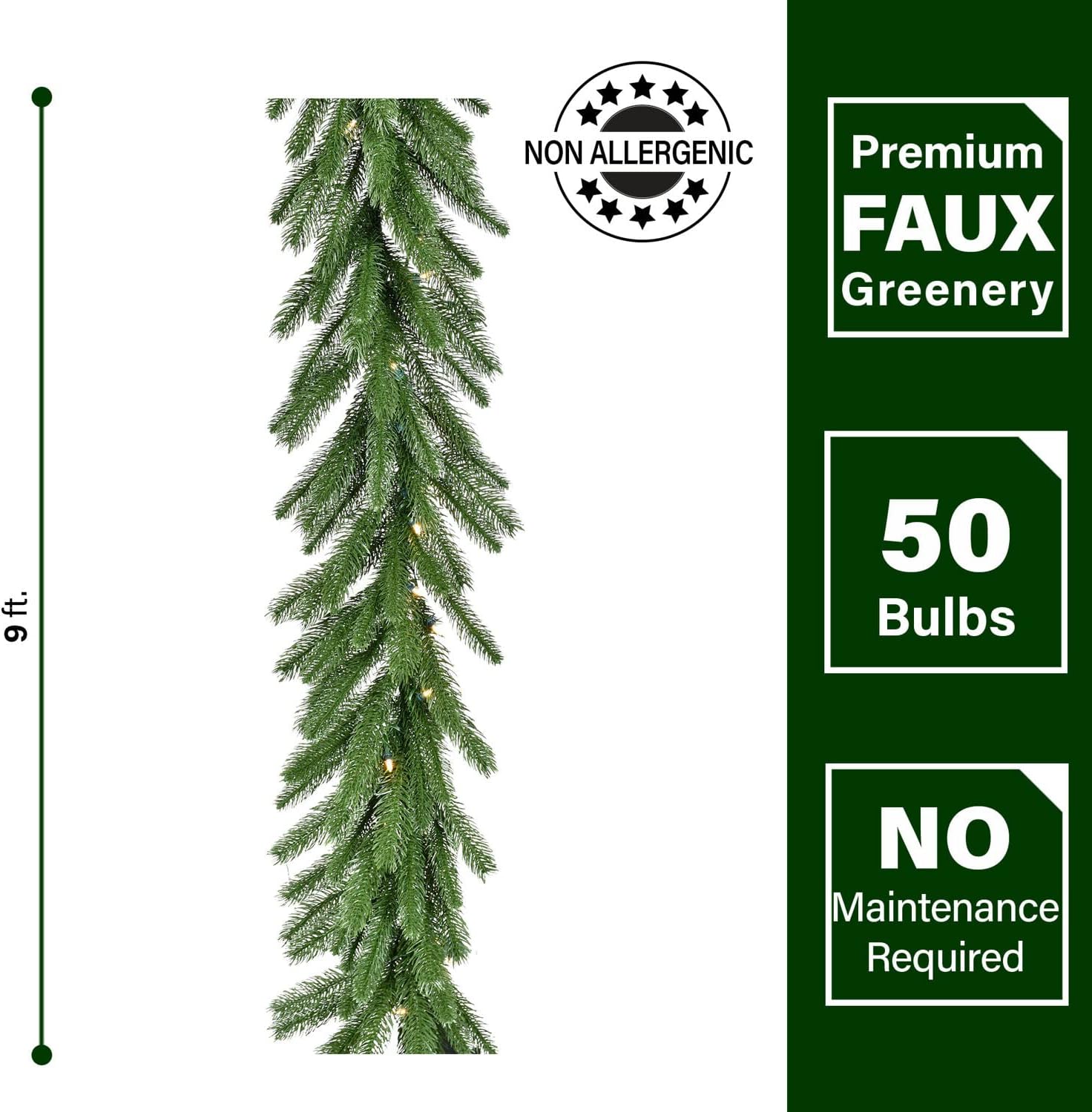 - DECK THE HALLS: Welcome guests with this delightful 108-inch faux greenery above your front door, on your fireplace mantle, or any place you want to add some Christmas joy; suitable for indoor or covered outdoor use