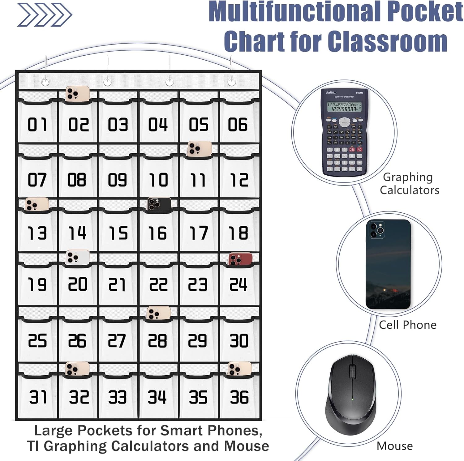- 【Cell Phone Pocket Chart for Classroom】Used as classroom phone storage and calculator storage. Perfectly to hold students cell phone, calculators in class. Let students focus more on studying, say goodbye to students playing with their phones in class and create an efficient classroom.