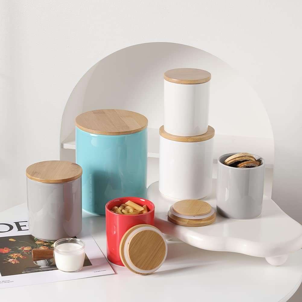 - Ceramic Material - Sweejar food storage containers are made of high-quality, smooth porcelain. The containers with wooden lid and rubber seal to ensure a true airtight seal and lightproof. They are good for maintaining food and seasoning fresh.