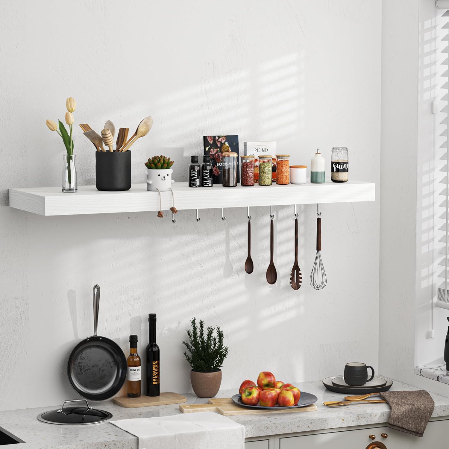 - Extra Deeper & Thicker - This wall shelf measures 36"W x 10.23"D x 1.8"H. Extra deeper and thicker design in order to bring maximizes storage space and weight capacity, even hold up to 70 lb. This floating shelf taking up zero square feet, reduces clutter and highlights décor in compact spaces.