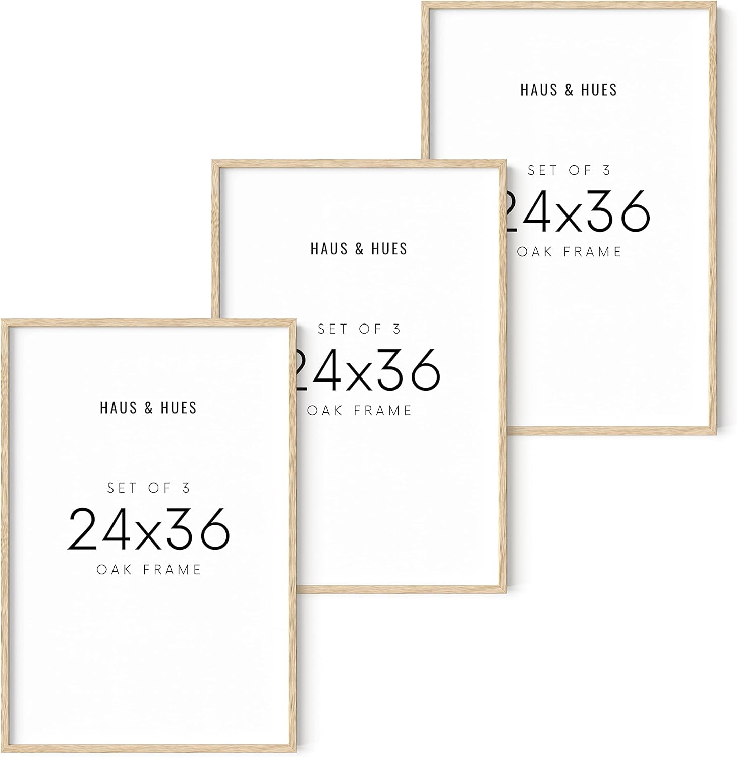 - Poster Sized Frame for Your Favorite Haus & Hues Artwork: Display your artwork in the most sophisticated way possible with this 24"x36" natural oak wood picture frame set! With a sleek minimalist design, this 24"x36" wood poster frame set is a simple way to hang any print or poster, whether it be modern or traditional in style. It's the perfect 24"x36" frame set to make your posters, prints and photos stand out from the rest