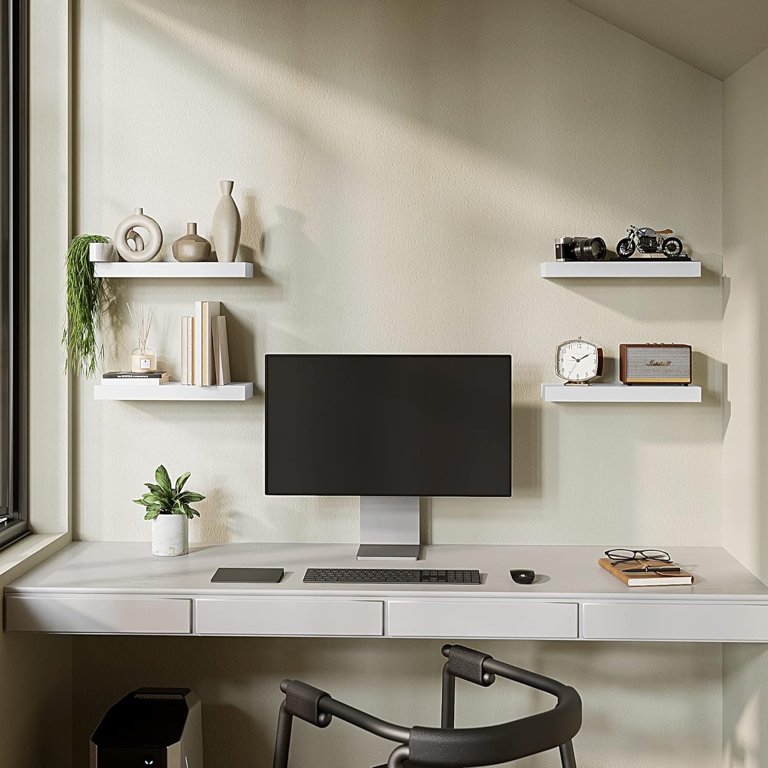 - GREAT FOR ANY ROOM: Our wood floating shelves are made of MDF with a frosted surface texture for a mordern feel that blends perfectly into a variety of different scenes; Having this small floating shelf not only for its decoration effect, but also for its high practicality; It can be used for organizing all household rooms, such as bedroom, living room, study, toilet, cloakroom, even kitchen and warehouse