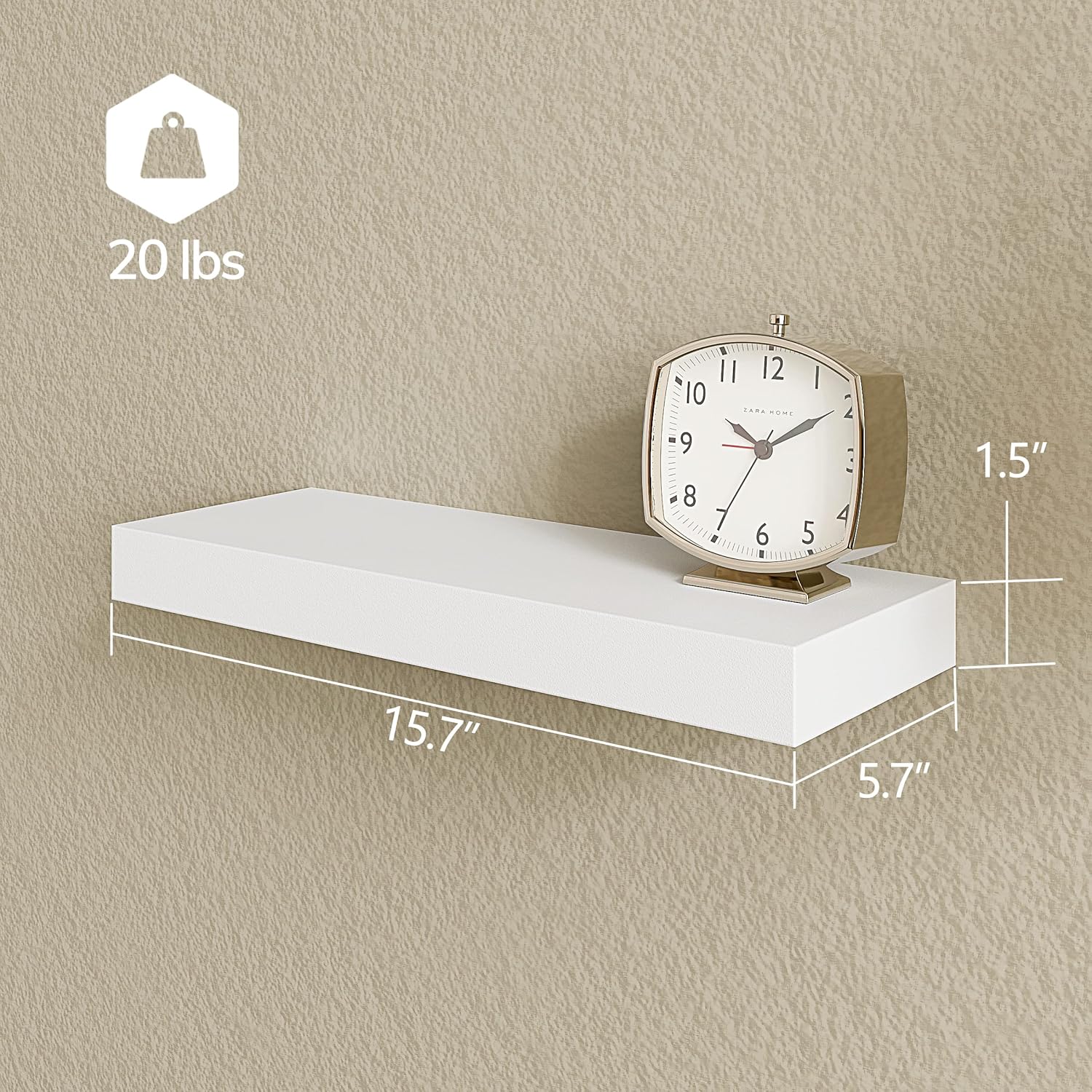 - WIDE SHELF BOARDS: The Bameos White Wall Shelf will maximize space without taking up any square feet - each board measures 15.7” L x 5.8” W x 1.5” H; Reduce clutter and highlight decor in a compact space - giving the illusion of more space in your studio apartment, dorm room or small living area and so on