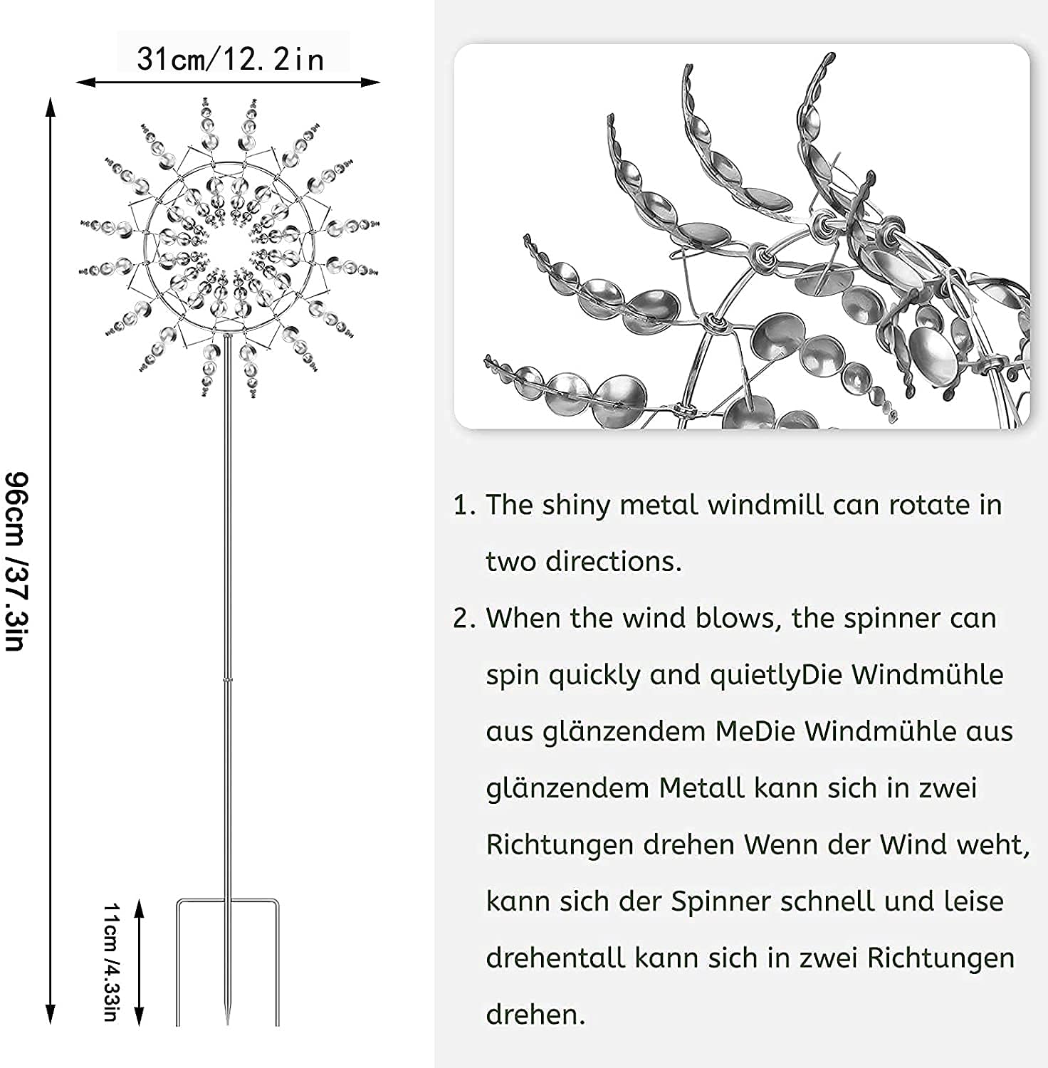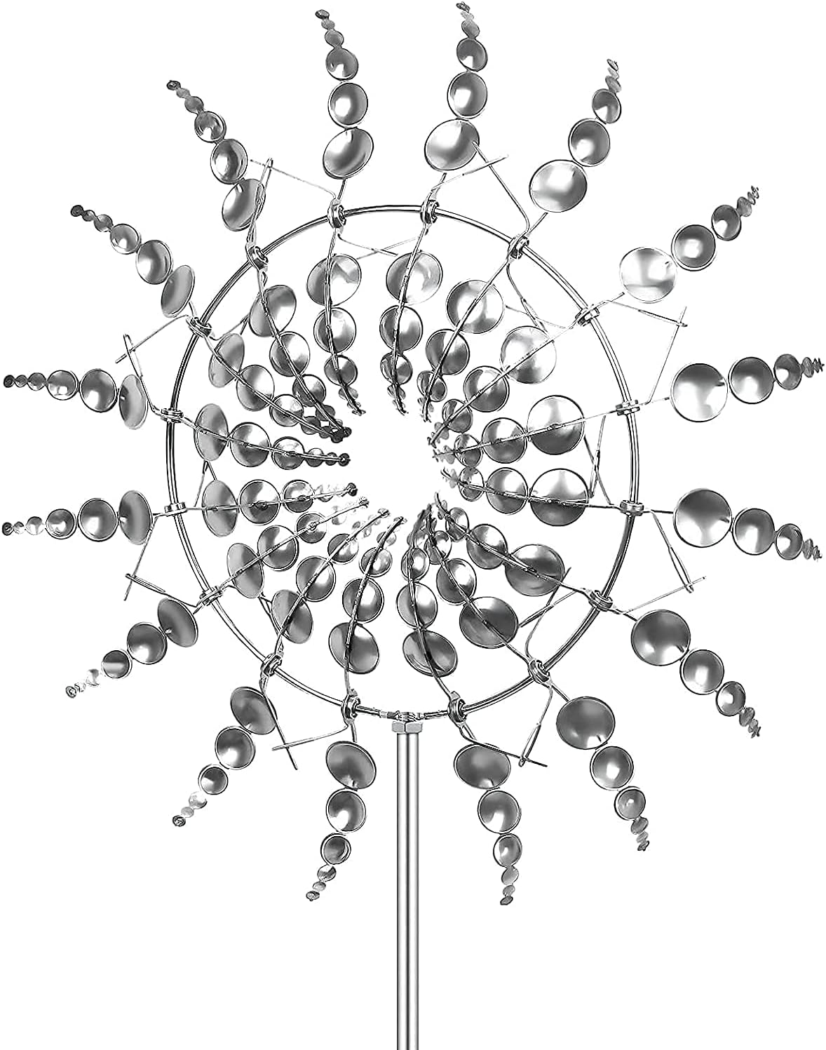 - ☘️【SPECIAL DESIGN】Each blade of this yard spinner is designed to spin in different directions, ball bearing construction allows our wind catcher to quietly spin even in the slightest breeze.The metal windmill sparkles in the sun, and you can enjoy your garden ornament.