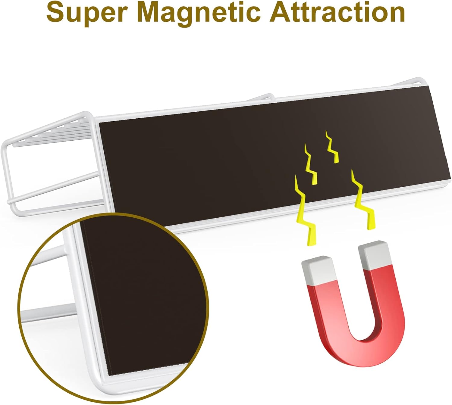 2 Pack White Magnetic Spice Rack Organizer, Space Saver for Refrigerator and Whiteboard, Metal Fridge Shelf for Kitchen and Classroom