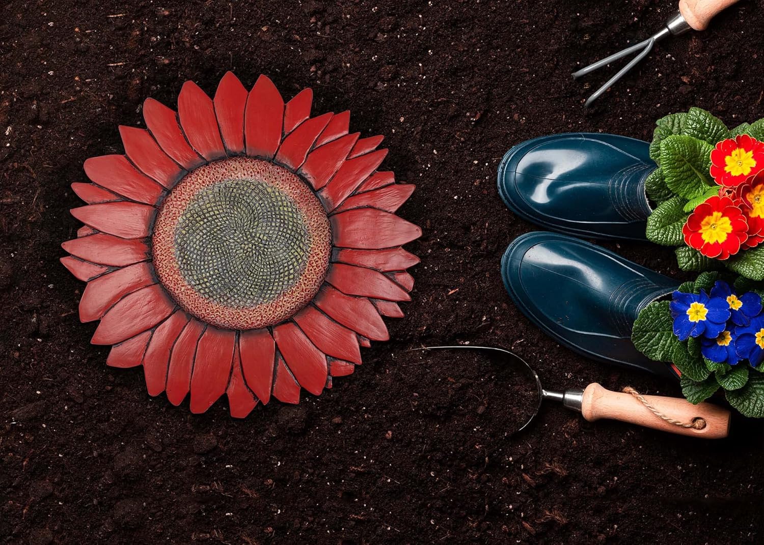 NAT & Jules Sunflower Shaped Dimensional Indoor Outdoor 12 inch Cast Resin Decorative Garden Stepping Stone, Patio, Walkway Sculpture Yard Art, Red