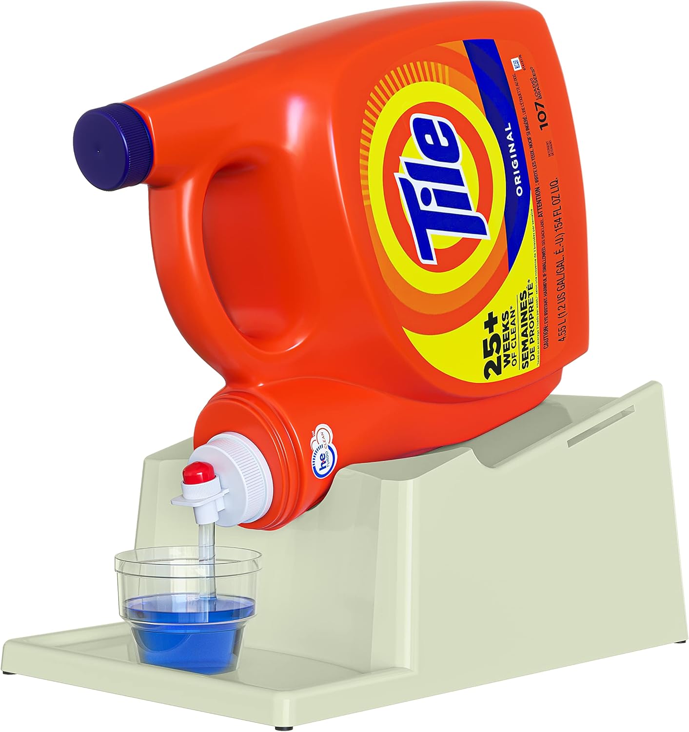 - [USES] - This Laundry Soap Detergent Holder will help you to pour out the detergent easier without using much effort to lift and carry the heavy containers of your favorite detergent or fabric conditioner. You can put this on top of your washing, or on your cabinets.