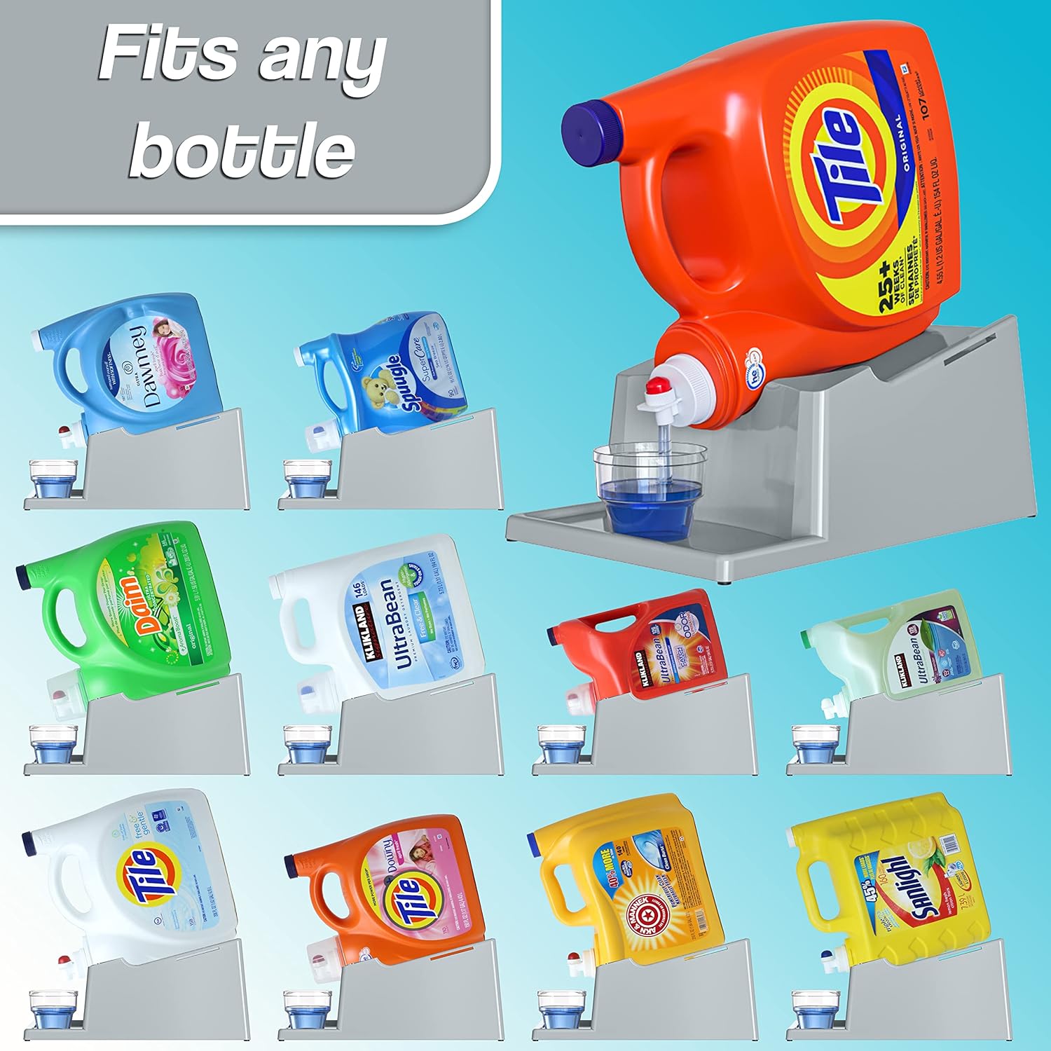 - [OUTSTANDING DESIGN] - This Laundry Detergent Holder has an "Angled" Feature. No need to tilt or lift the bottle. This Laundry Detergent Stand can help you to be more energy-saving at a cheap cost by using this item for both your detergent and fabric conditioner bottles as part of your daily Laundry Supplies