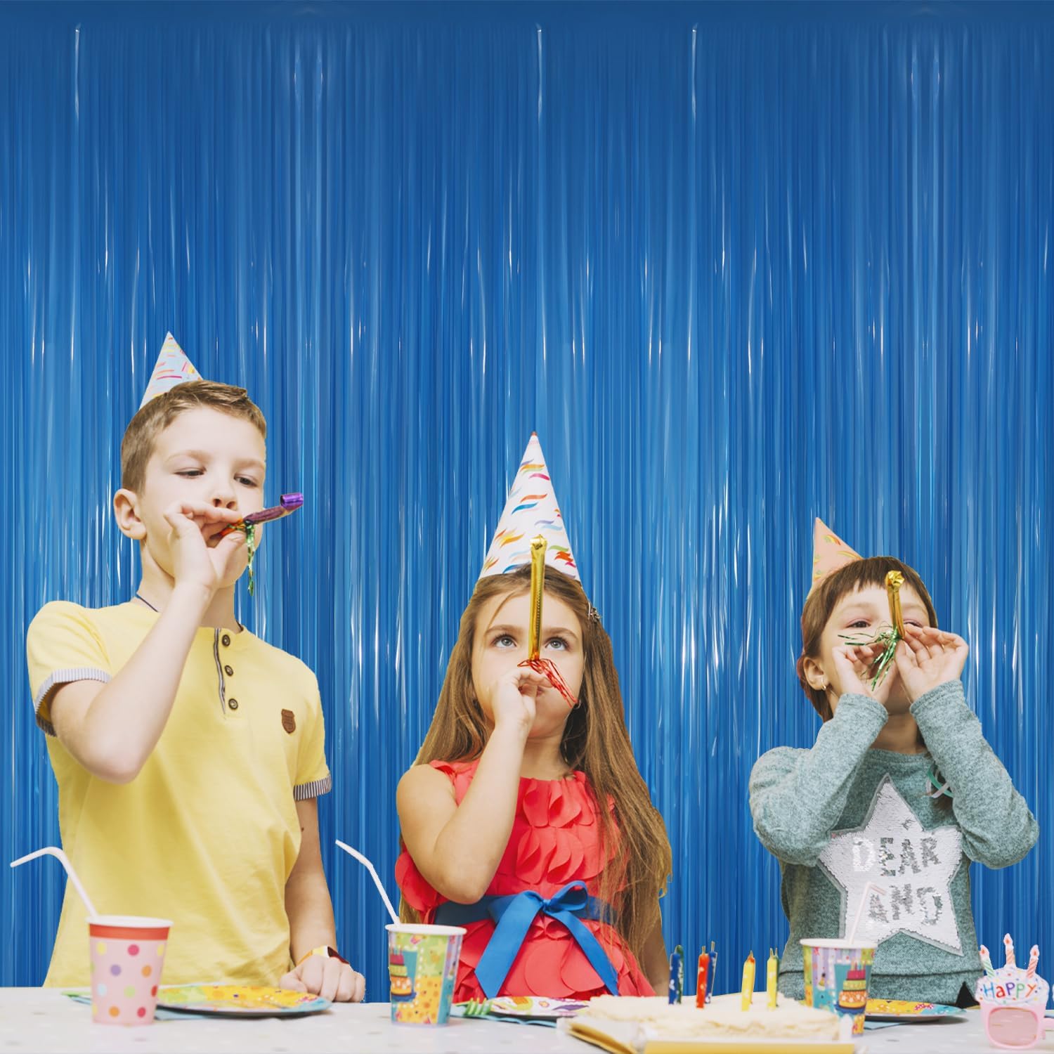 GOER 3.2 ft x 8.2 ft Metallic Tinsel Foil Fringe Curtains Party Photo Backdrop Party Streamers for Birthday,Graduation,New Year Eve Decorations Wedding Decor(4 Packs,Candy Blue)