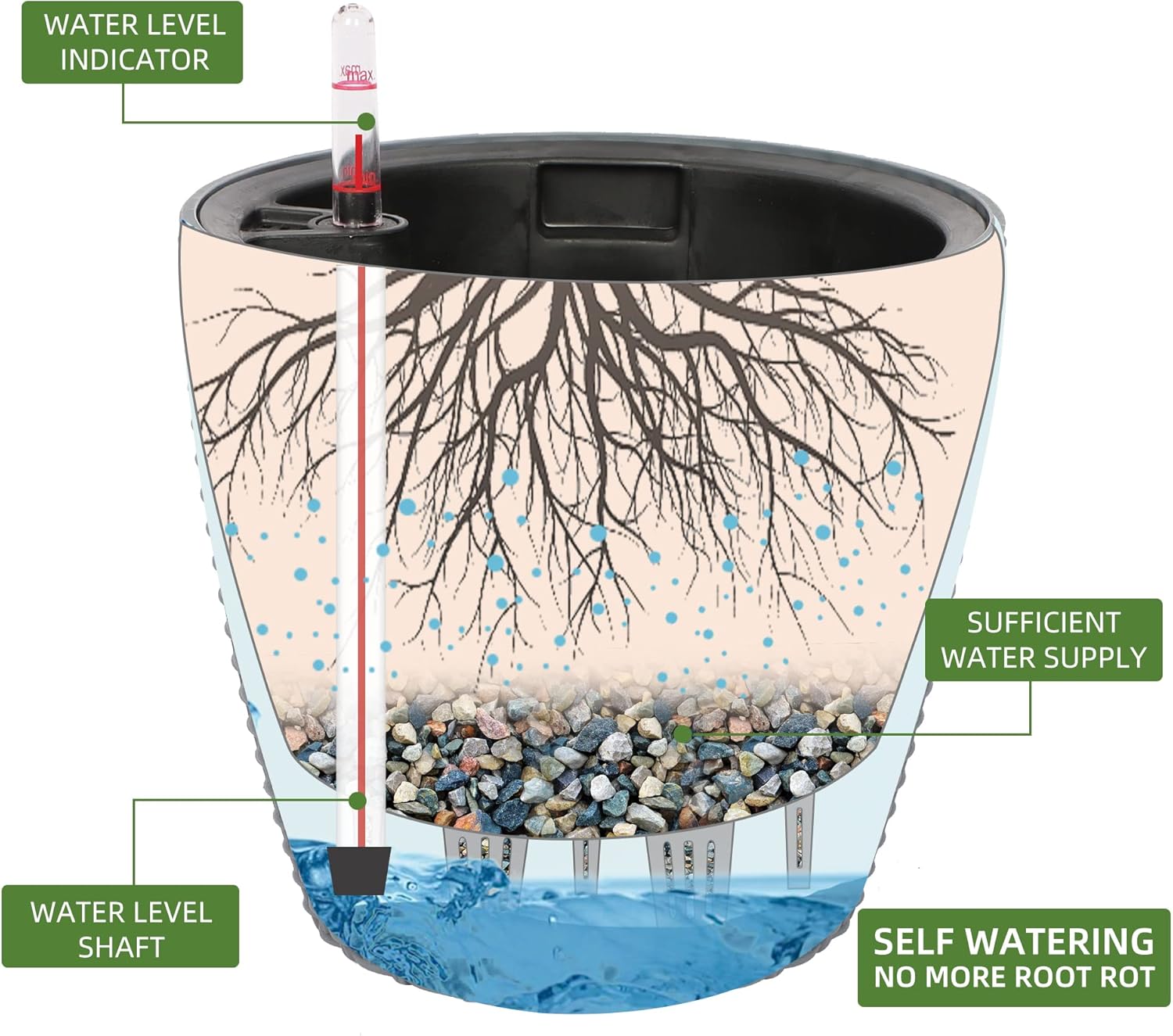 - Self Watering System: The integrated water reservoir keeps soil moist and aerated for optimal plant growth.