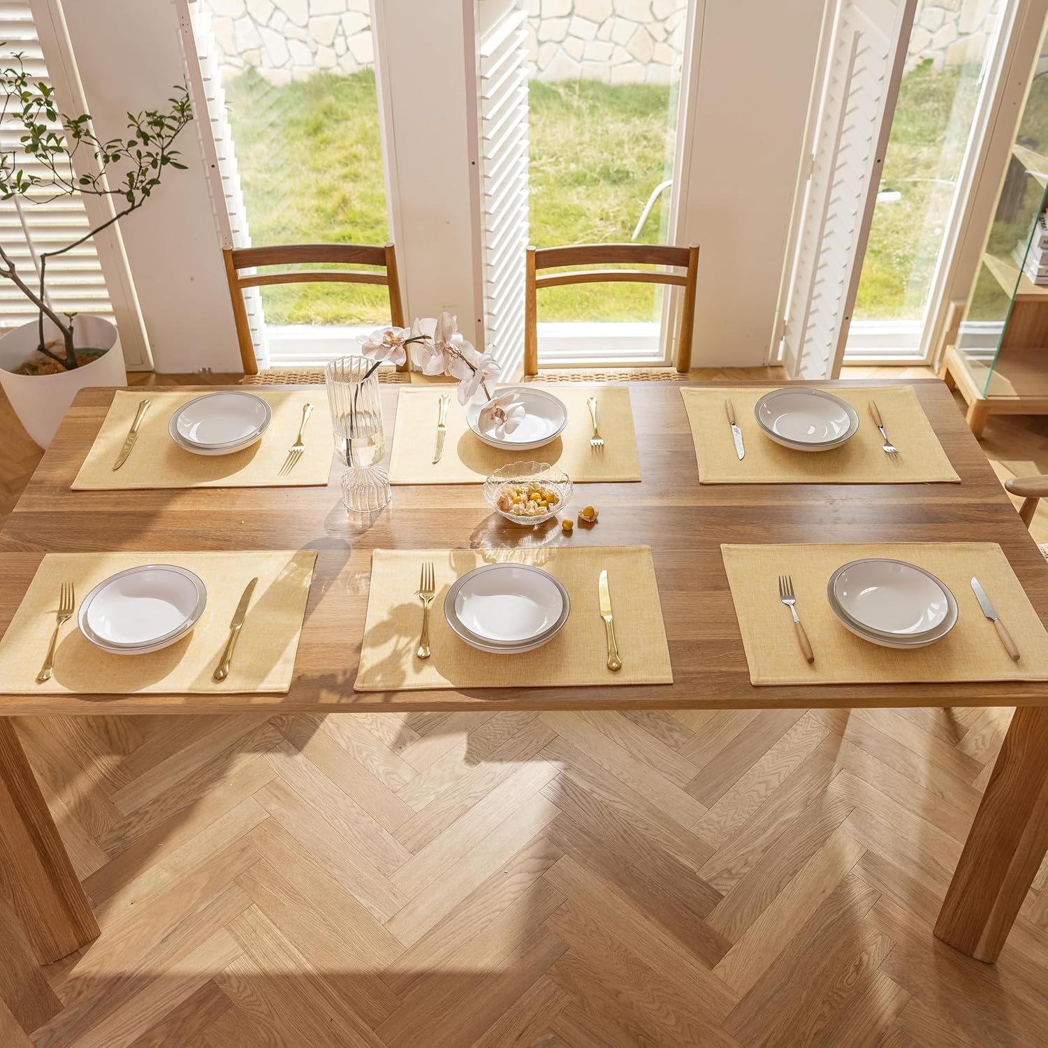 Demetex Placemats Set of 6 Yellow Table Mats Linen Fabric Placemats Heat Resistant Cloth Place Mats for Dining Kitchen Table, Yellow