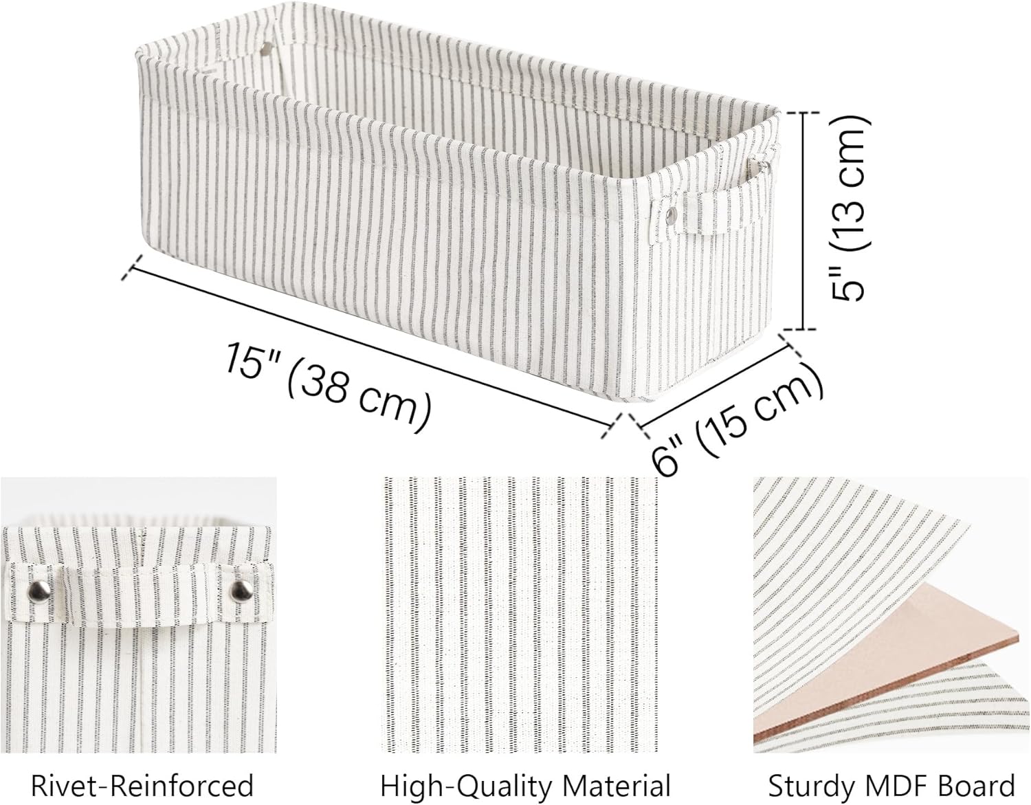 StorageWorks Narrow Storage Bins, Small Basket for Closet and Shelves, Fabric Organizer with Handles, Toilet Paper Storage, Gray and White Stripes, 2-Pack