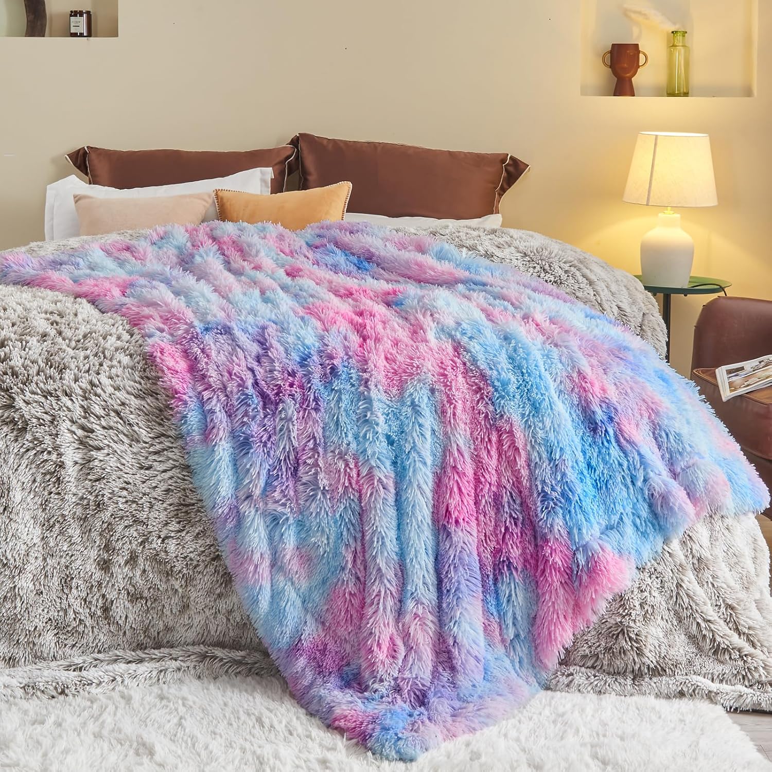 GONAAP Fuzzy Faux Fur Throw Blanket Purple Rainbow Super Soft Cozy Plush Fuzzy Shaggy Blanket for Couch Sofa Bed (Purple Rainbow, Throw(50"x60"))