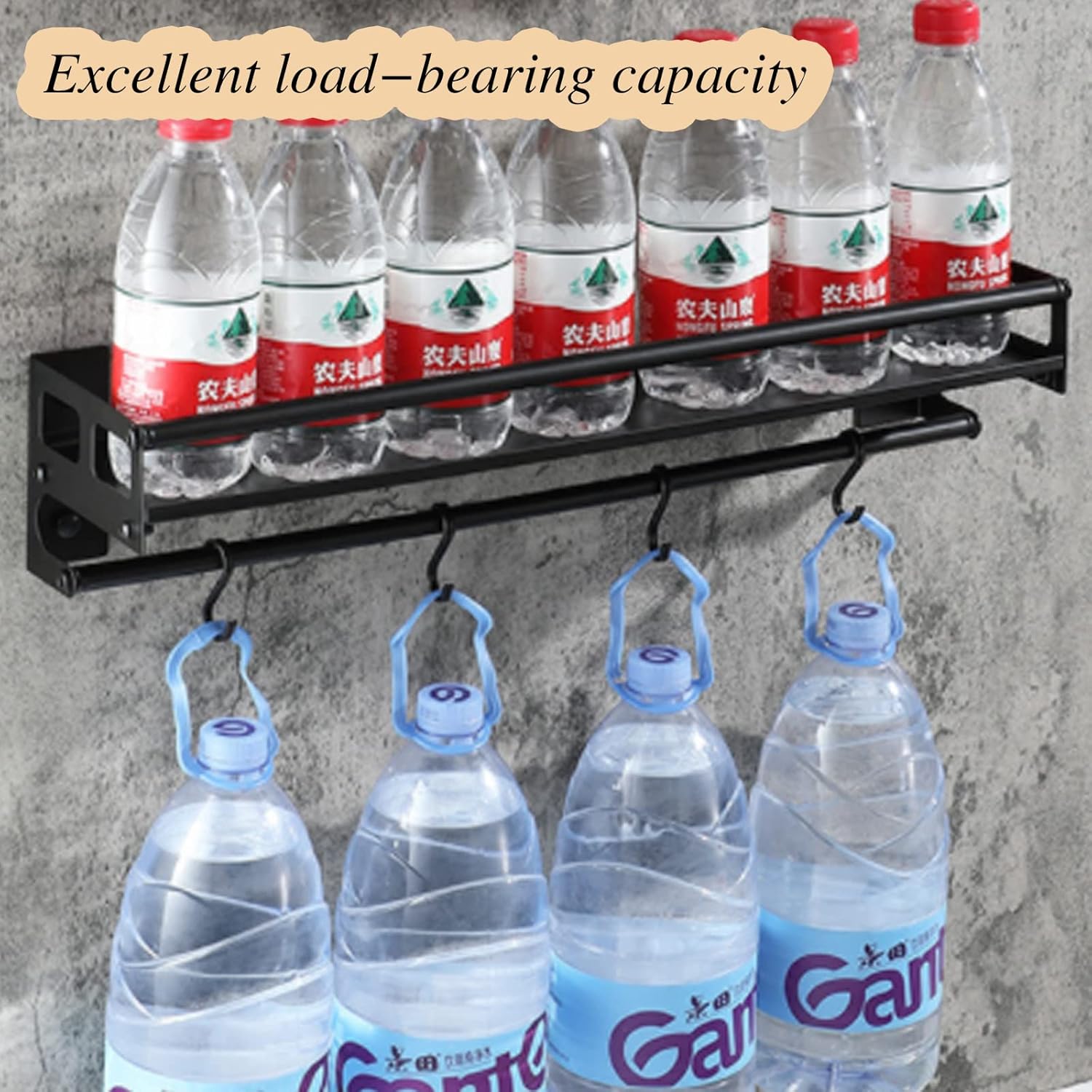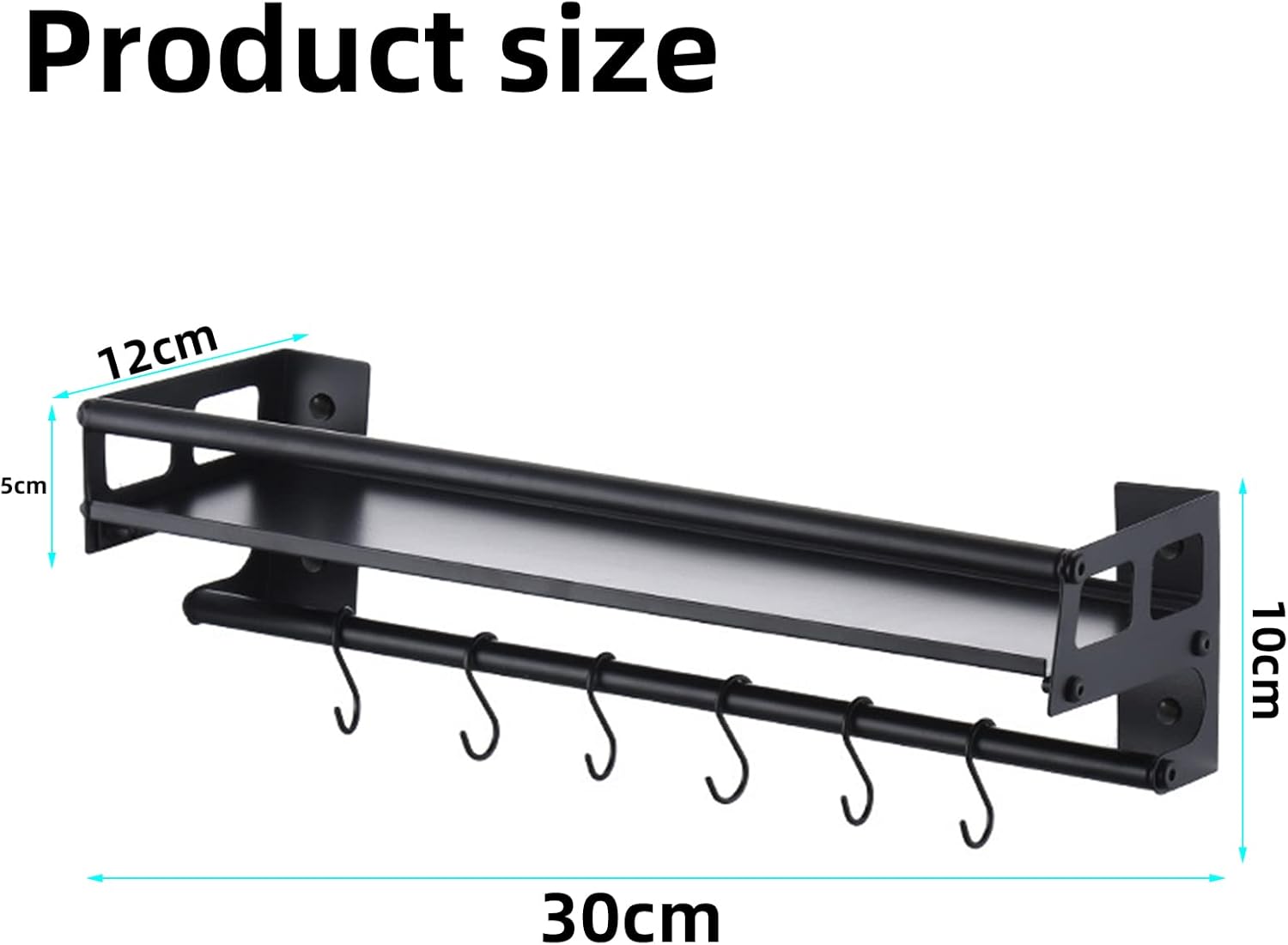 - 【6 Removable Hooks】This spice shelving unit comes with 6 removable hooks that is very convenient for scissors, measuring cups/ spoons, oven mitt, keys, sunglasses, pot holders, etc.