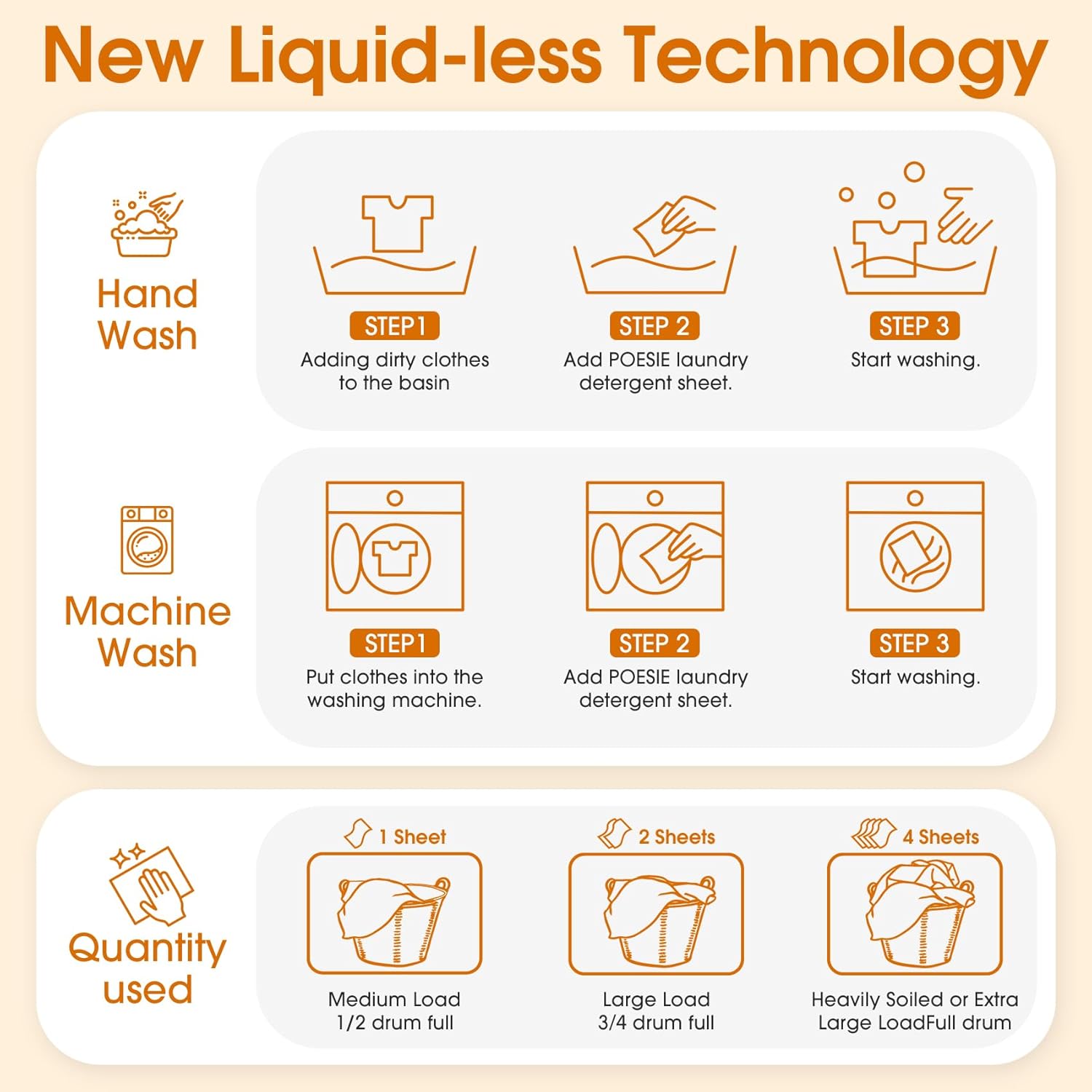 Poesie Laundry Detergent Sheets Citrus Scent 160 Sheets 80 Large Loads Laundry Strips No Plastic Jug Liquidless Travel Portable HE for Camping Dorm Life Clean