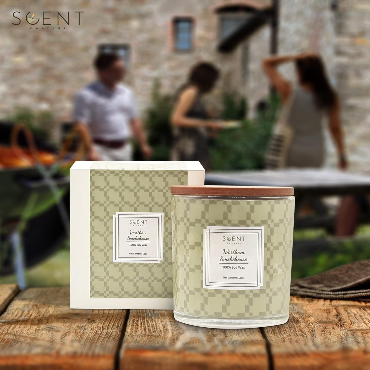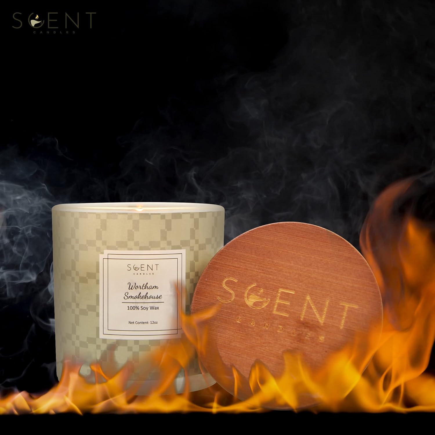 | Highly Scented Candles - Aromatherapy Candles for Home | Wortham Smokehouse Candle | 12oz Glass Jar | 100% Natural Soy Wax Candles | Burn Time 60-70 Hours