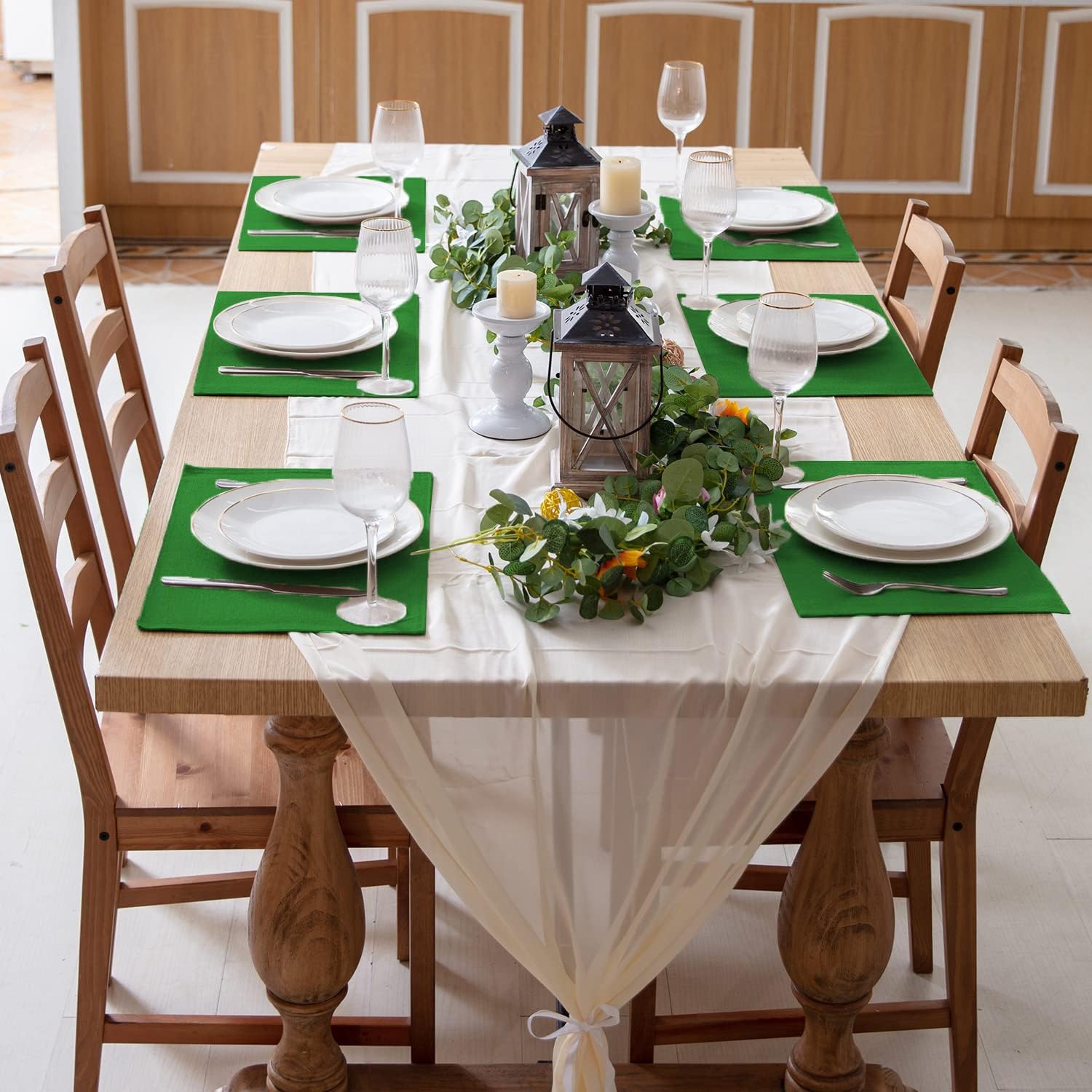 - [RUSTIC LOOKING, PERFECT FOR CHRISTMAS & NEW YEAR & THANKSGIVING DECOR] Made by textured polyester fabric and designed like linen, our table mat has a rustic and cozy look. It effortlessly enhances your table settings and adds a warm, natural touch to your Christmas, New Year and Thanksgiving dinner party, making it perfect for the season.