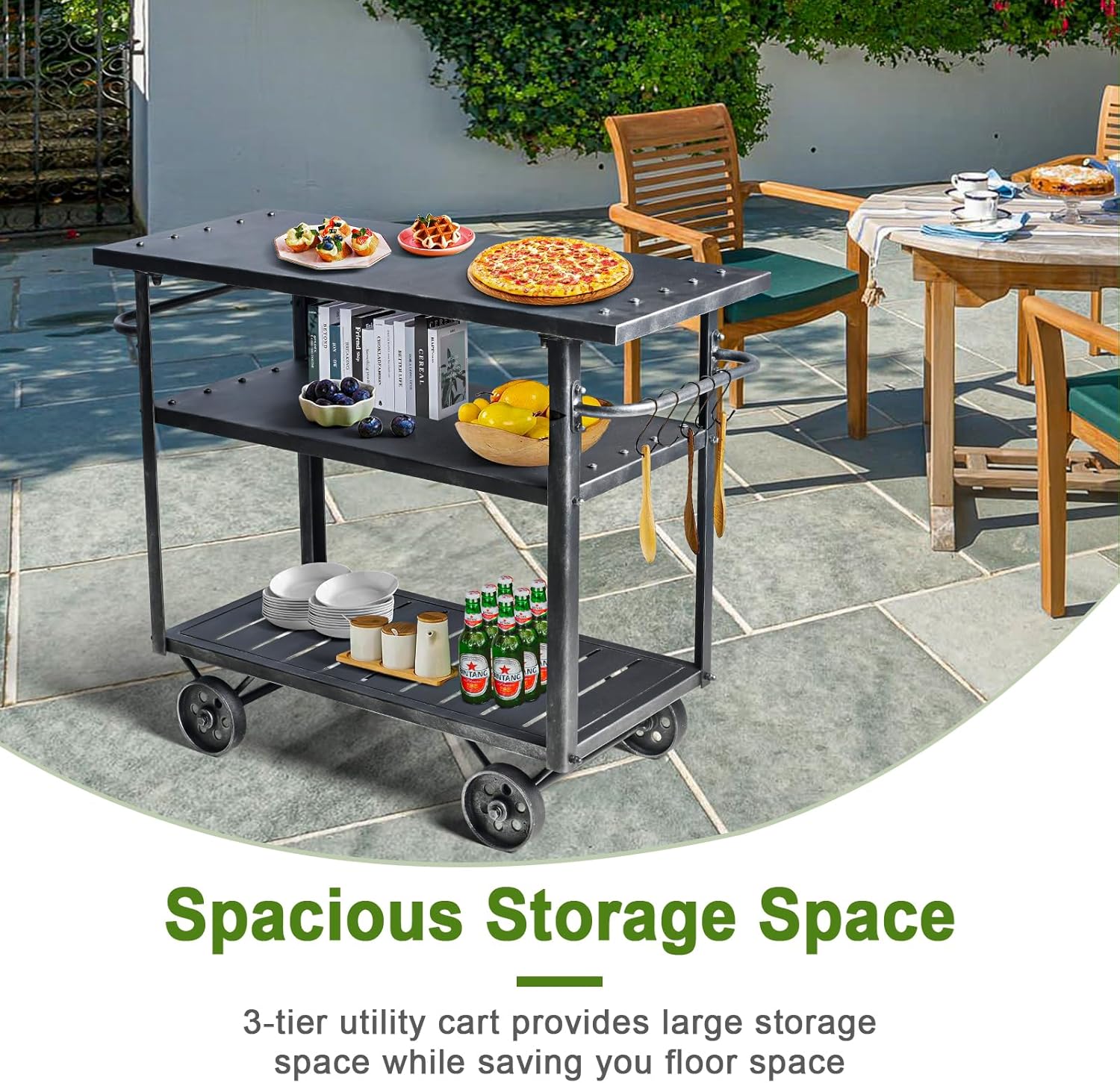 - 【SPACIOUS STORAGE CAPACITY】3-tier utility cart provides large storage space while saving you floor space; great storage solution for a small kitchen