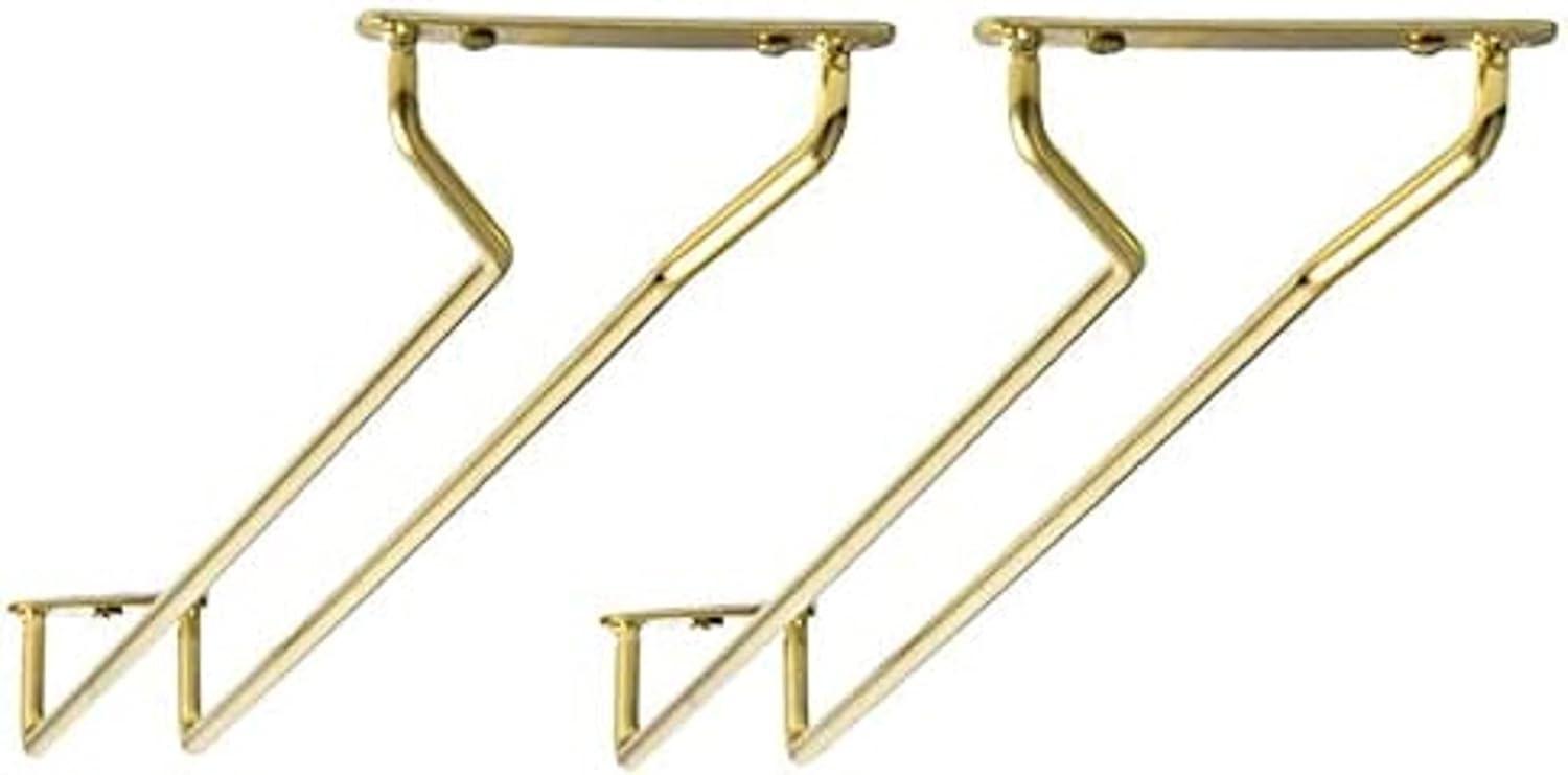 TrueCraftware- 10-Inch Wine Glass Rack Brass Finish Set of 2- Stemware Rack Wire Hanging Rack Under Cabinet Wine Glass Stemware Holder Glass Storage Hanger Organizer for Kitchen and Bar
