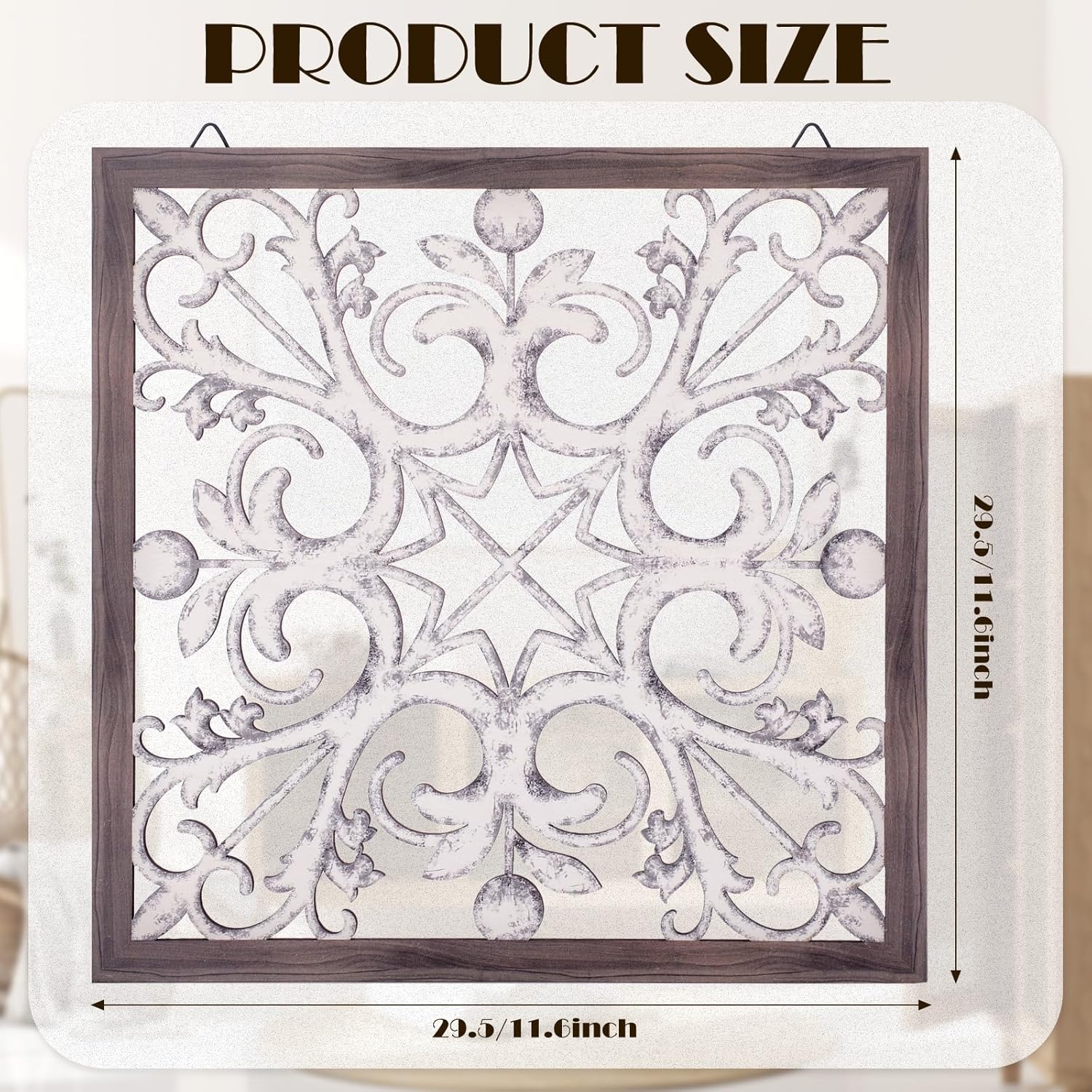 - Classic Design: the farmhouse wall decor for living room adopts rectangular pattern, with classic white and brown appearance and vintage curves to create an artistic feel, bringing a more elegant and vintage atmosphere to your space