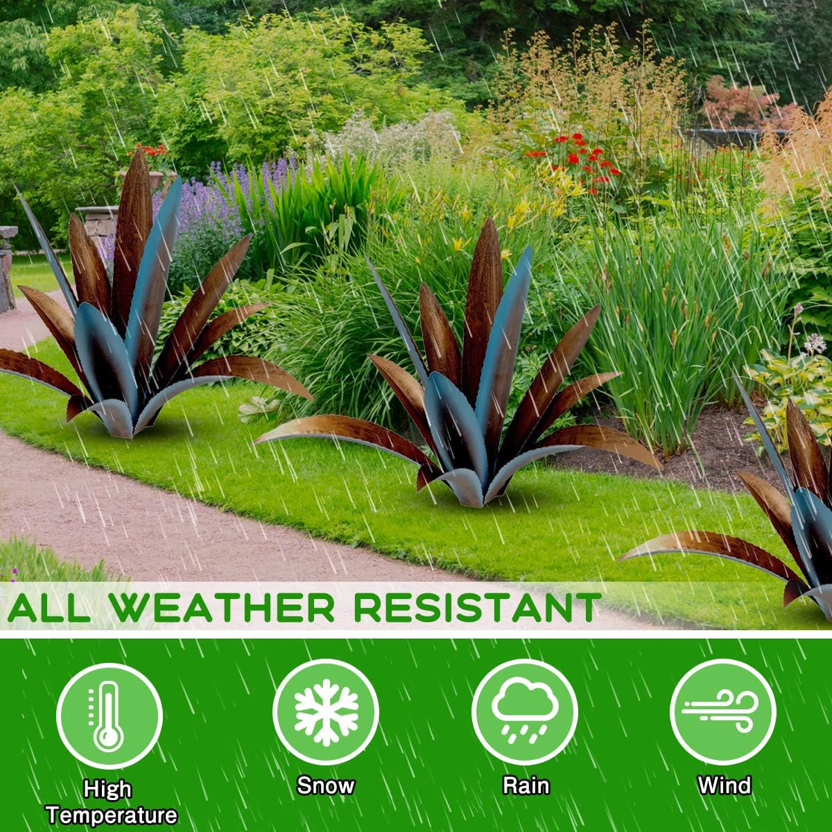 - 【Easy to hang】Just put it anywhere you want, great for garden, yard, deck .Can be placed on the ground, on a patio, used as an accent in a flower pot - both outdoors and indoors,It will brighten up any space you place it in. This particular agave look as if its growing from out of the ground.