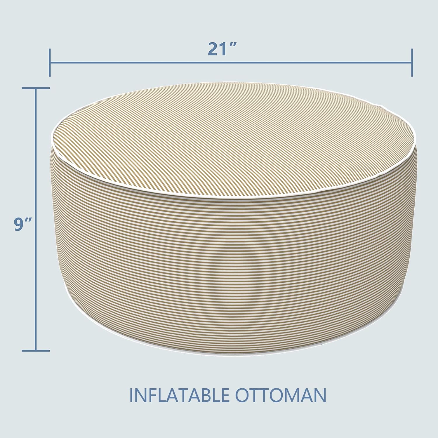 LVTXIII Inflatable Stool Ottoman Footrest with Handle, All Weather Foot Rest, Indoor or Outdoor Use for Home Patio Garden and Camping, D21 x H9, Stripe Beige