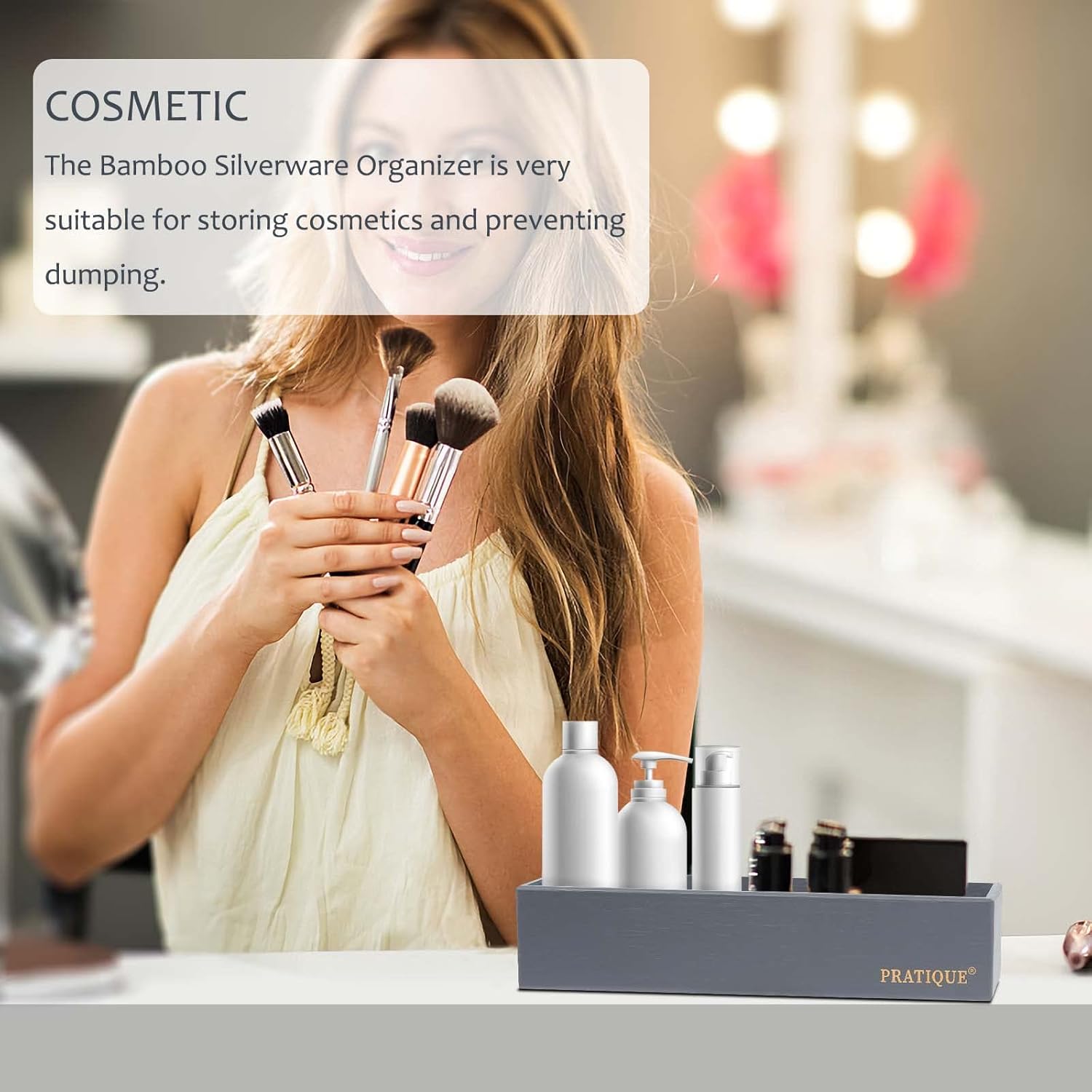 Bamboo Drawer Organizer - Kitchen Utensil Organizer Silverware Tray Cutlery Holder,Office Desk Supplies and Accessories,15 * 5.9 * 2.6,Grey