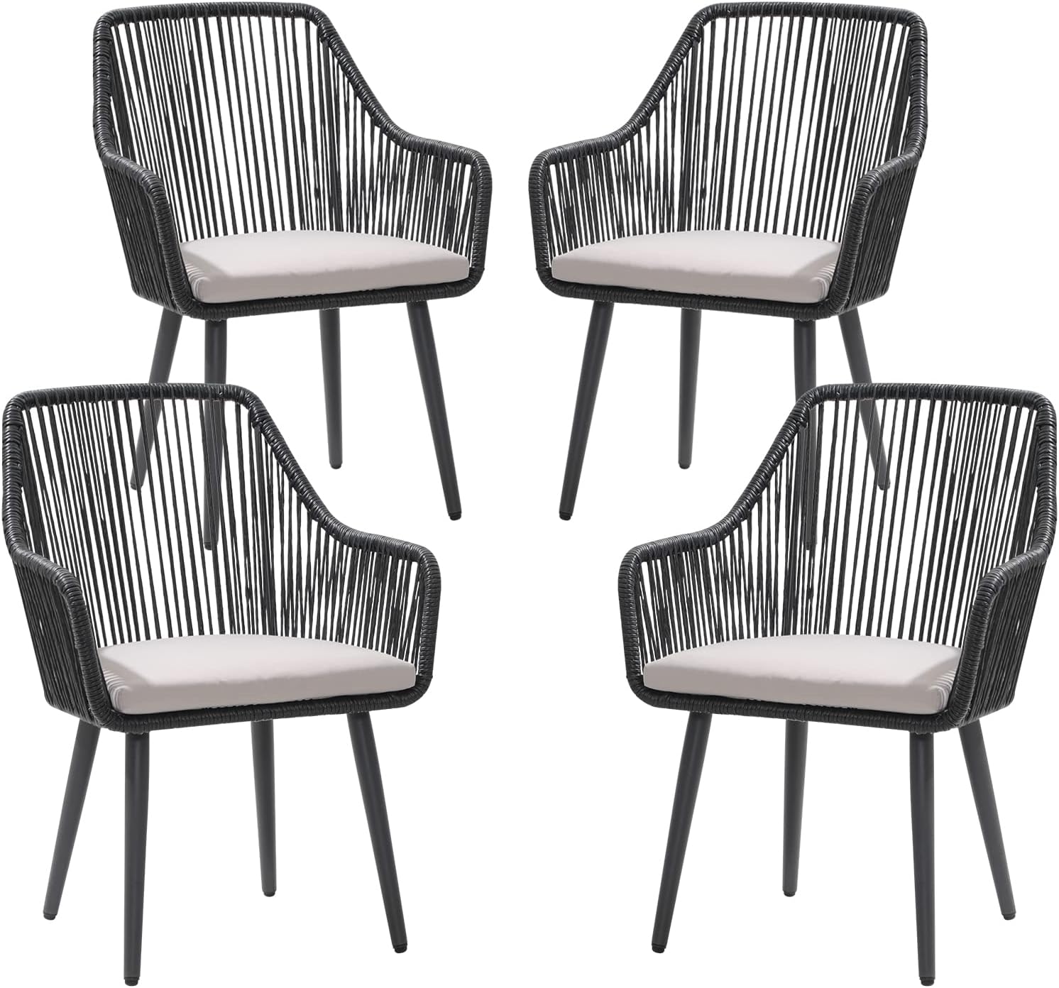 Patiorama Outdoor Dining Chairs, Patio Dining Chair Set of 4, All-Weather Woven Rope Rattan Chairs, Outdoor Dining Wicker Chairs with Armrests for Indoor Balcony Pool Backyard(Black)