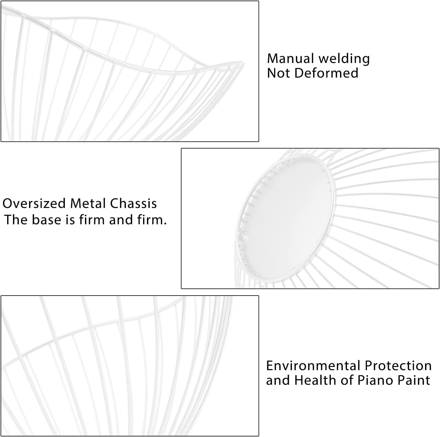 - Anti-Slip Bottom: The round iron piece at the bottom of the wire fruit basket to balance the basket more stable, there are 4 small rubber feet at the bottom to prevent sliding, easy to drag the kitchen fruit basket without damage the counter
