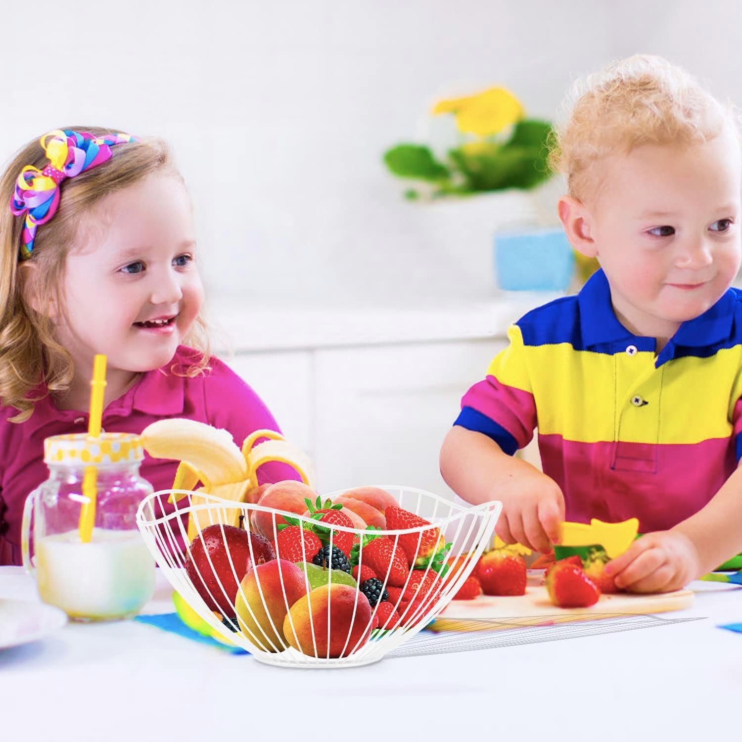 - Elegant & Modern Design: Smooth curved opening with graceful lines design, the fruit basket is a great addition to your kitchen, adding a elegant and sleek modern touch to your home while storing your fruits safely