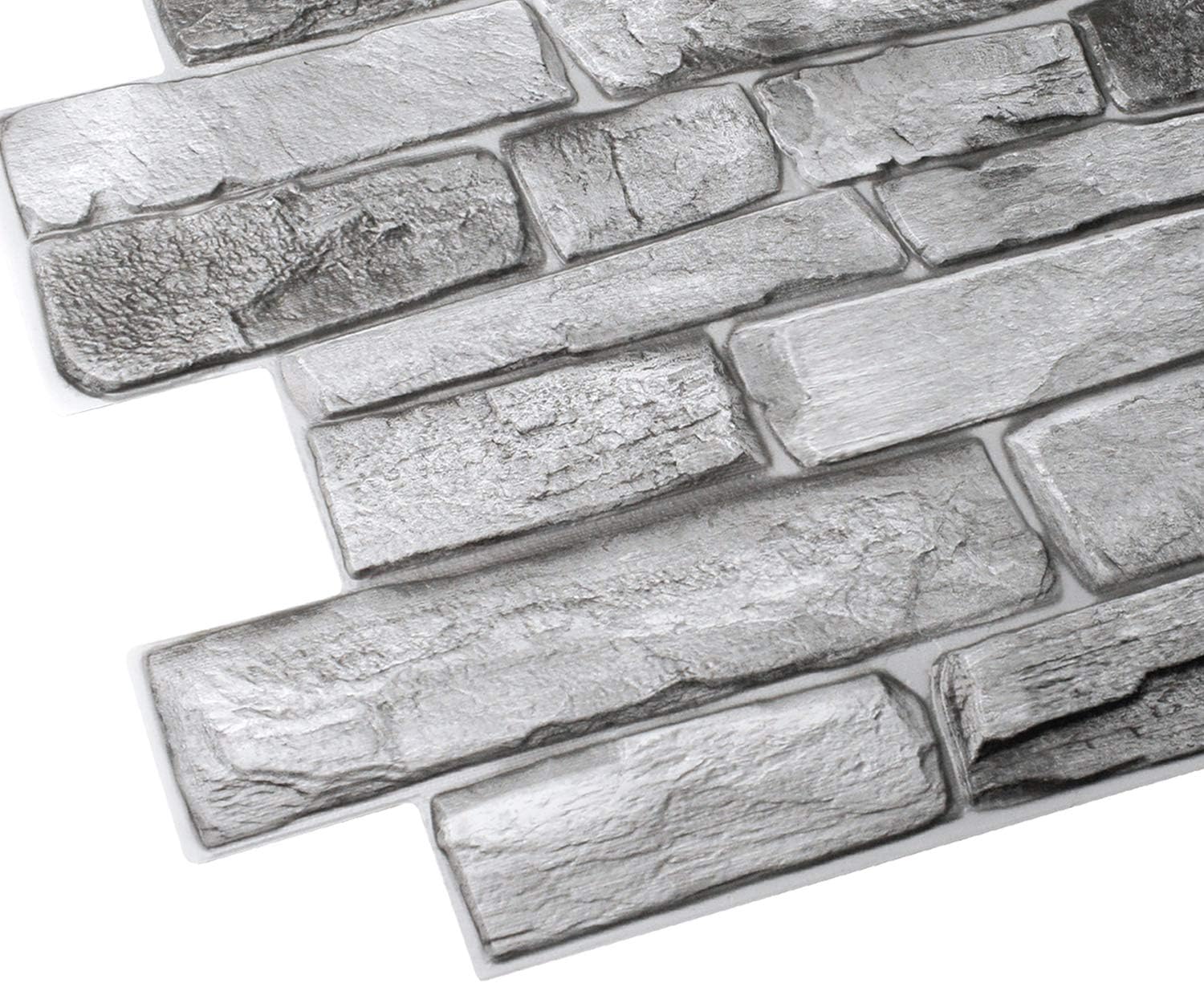 Dundee Deco Grey Faux Stone PVC 3D Wall Panel, 3.2 ft X 1.6 ft (98cm X 50cm), Interior Design Wall Paneling Decor, Sample 9 in X 9 in