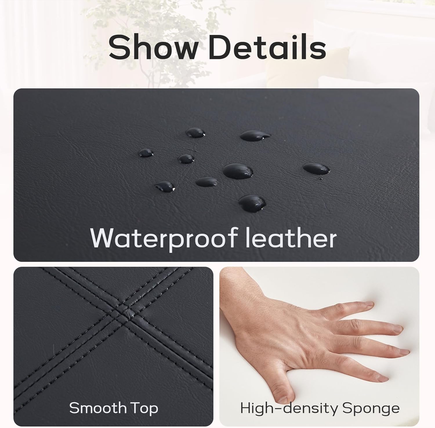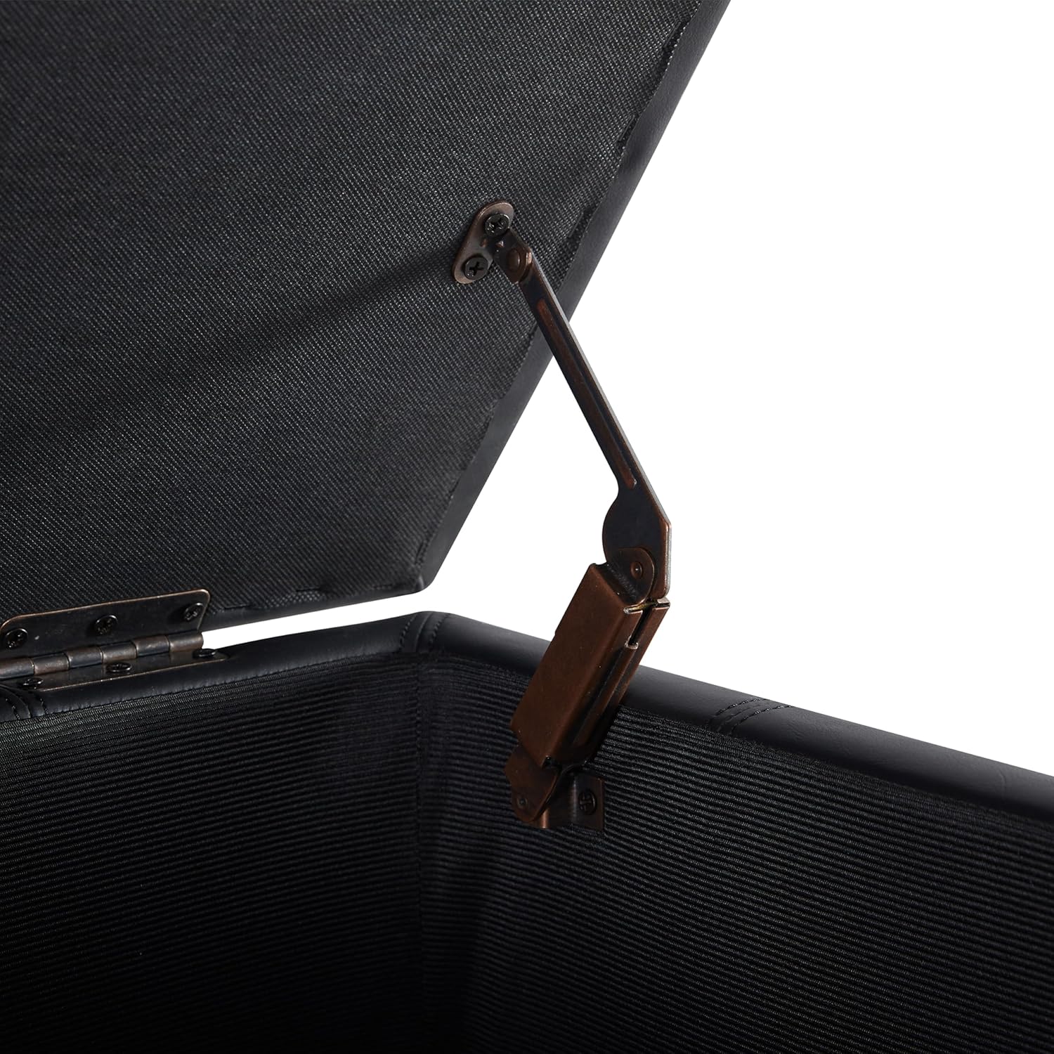 HUIMO Square Leather Storage Ottoman, Black Tufted Large Ottoman for Living Room, Coffee Table with Storage(Black)