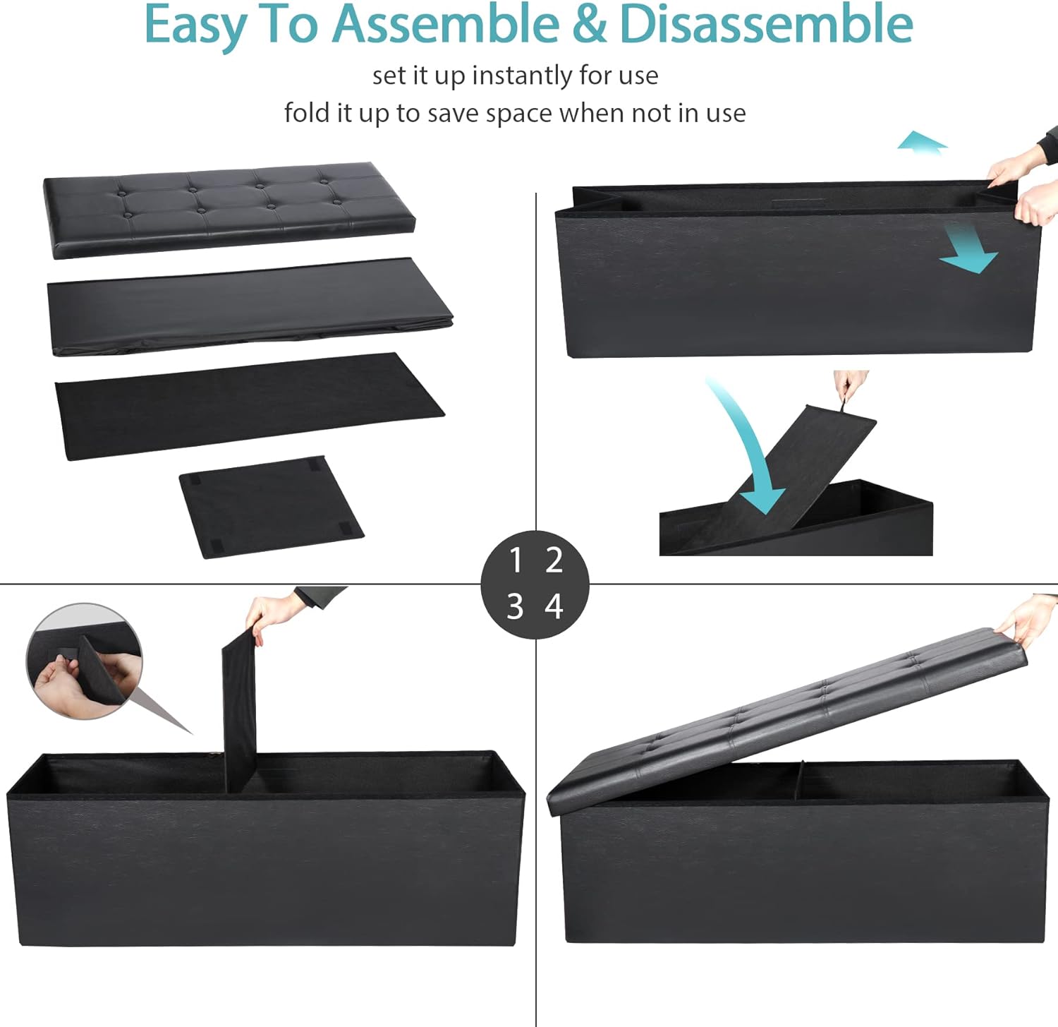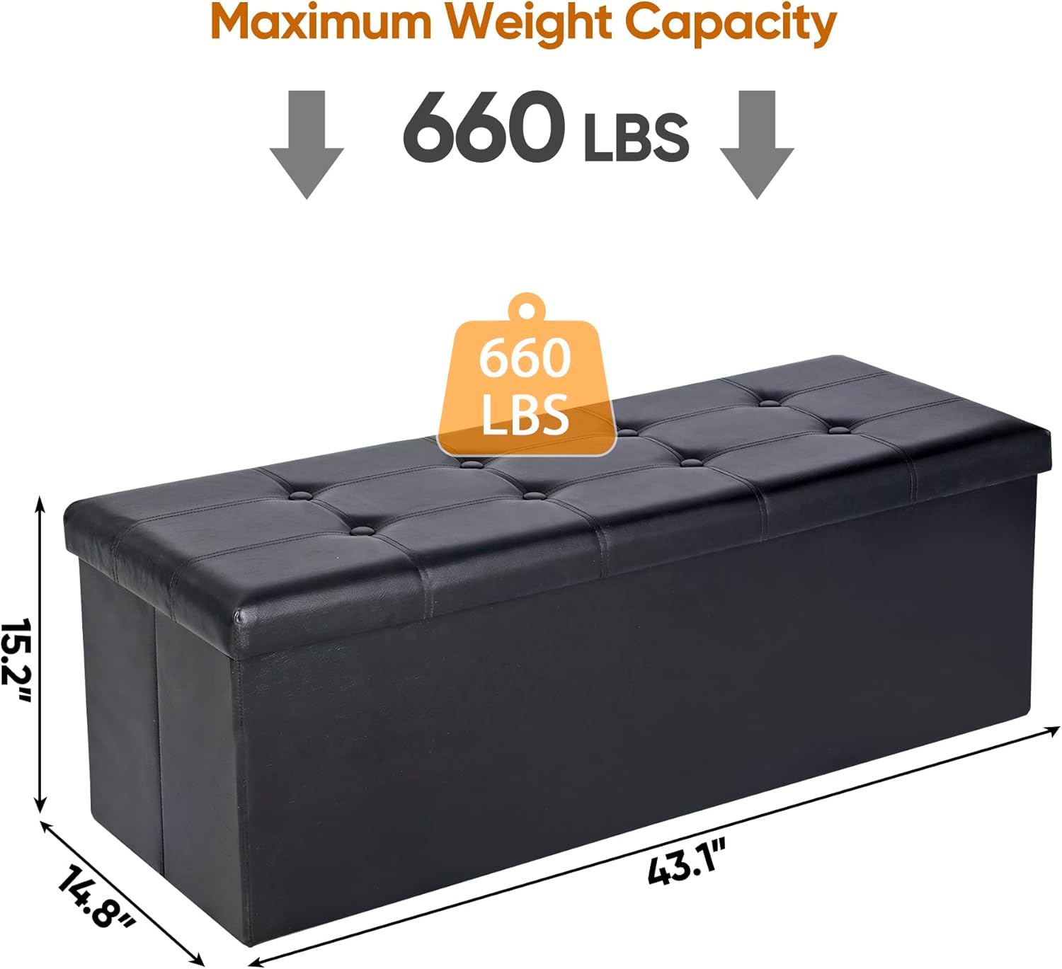 SUPER DEAL 43 Inch Folding Storage Ottoman Bench, Faux Leather Storage Chest Shoes Bench with Divider Padded Seat Couch Footrest for Bedroom Entryway, 660 lbs Capacity 43"x 15"x 15", Black