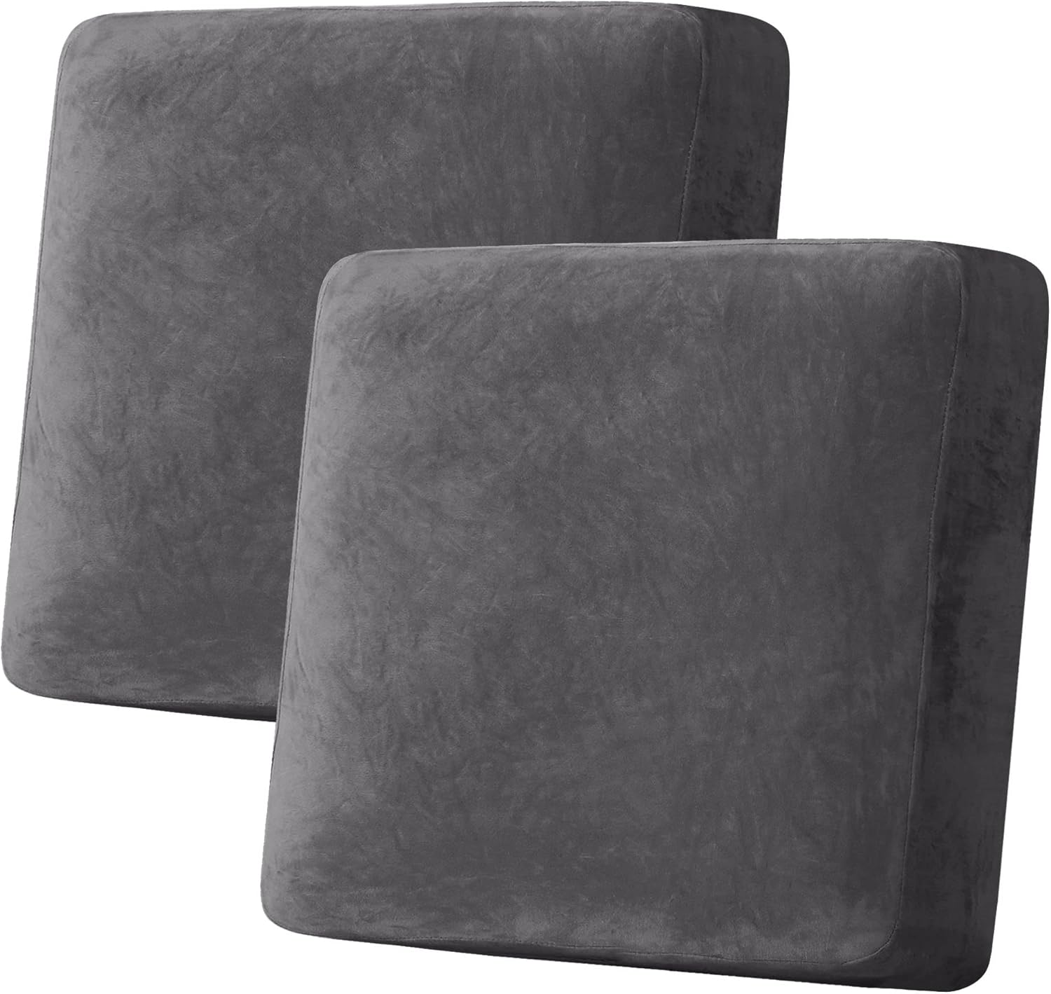 H.VERSAILTEX Velvet Stretch Couch Cushion Cover Plush Cushion Slipcover for Chair Loveseat Sofa Cushion Furniture Protector Seat Cushion Sofa Cover (2 Piece Large Sofa Cushion Covers, Grey)