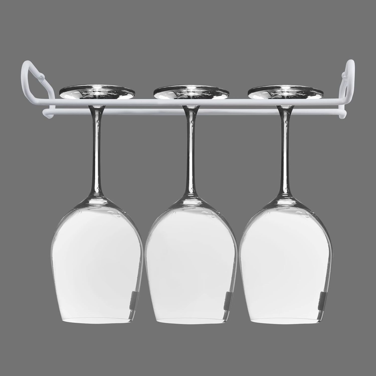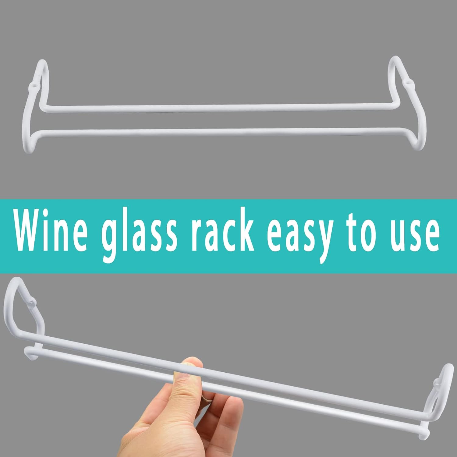set 2 White Wine Glass Rack Under Cabinet Shelf 10 Inch Stemware Storage Hanging Hanger Organizer Glasses Holder with Drying Under Counter Metal for Kitchen and Bar